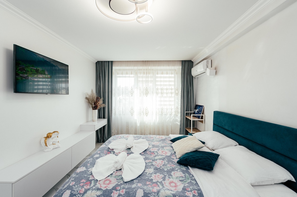 Ευρύχωρο διαμέρισμα με 2 υπνοδωμάτια και σαλόνι στην καρδιά του πάρκου Valea Trandafirilor, που προσφέρει ιδιαίτερη θέα στη φύση – απέναντι από τη Malldova. Ευρύχωρο σαλόνι, σύγχρονη διακόσμηση, 2 άνετα υπνοδωμάτια και 2 πλήρως εξοπλισμένα μπάνια, για μια ασυμβίβαστη εμπειρία. Εξοπλισμένη κουζίνα, γρήγορο Wi-Fi, κλιματισμός, τηλεόραση, πλυντήριο ρούχων. Περιλαμβάνεται υπόγειος χώρος στάθμευσης Ιδανικό για οικογένειες, τουρίστες ή επαγγελματίες ταξιδιώτες που αναζητούν ηρεμία, προσβασιμότητα και άνεση