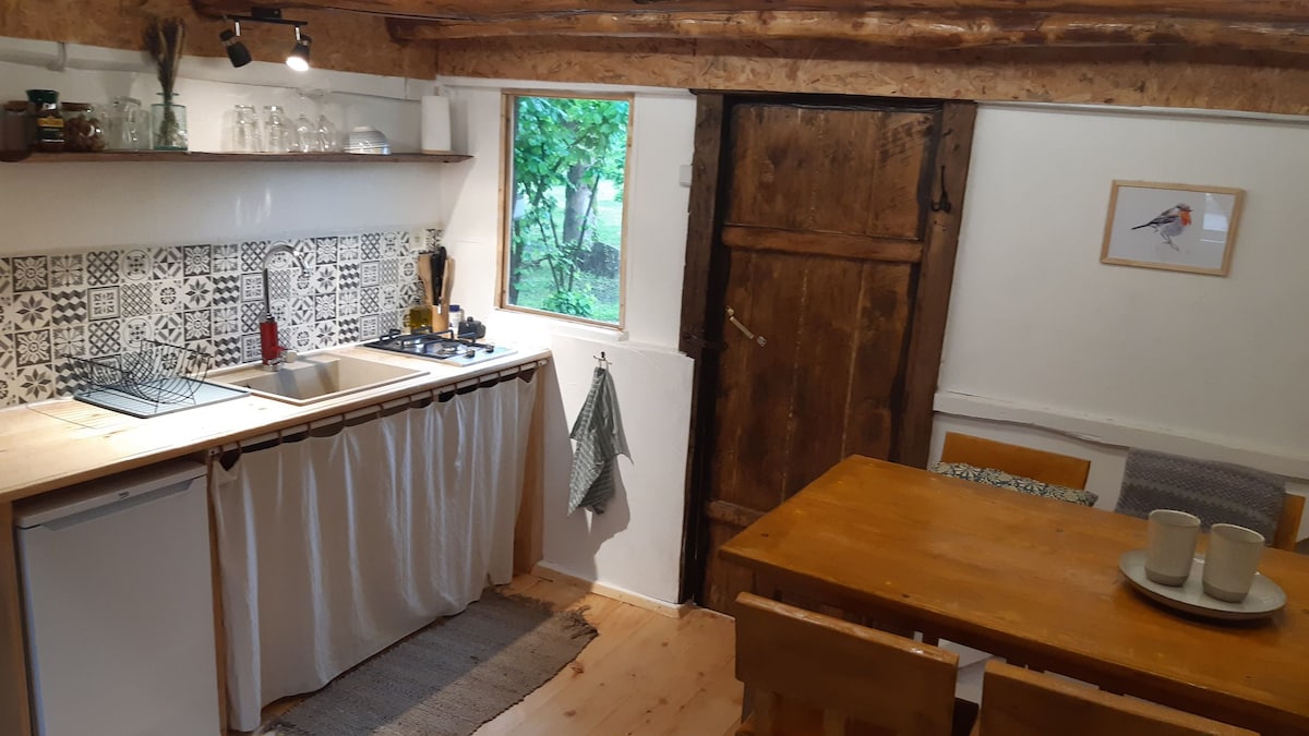Στον μεγάλο κήπο του παραδοσιακού Μινγκρελιανού σπιτιού μας, μπορείτε να νοικιάσετε αυτό το ιδιωτικό και ανακαινισμένο ξυλόσπιτο. Από τη βεράντα μπορείτε να απολαύσετε τον κήπο και να πάτε στον ποταμό Khobis Tskali. Το ξυλόσπιτο είναι πλήρως εξοπλισμένο με μικρή κουζίνα, τουαλέτες, μπάνιο και κρεβάτι στο μεζονέ. Ιδανικό για πεζοπόρους που θέλουν να ξεκουραστούν πριν ή μετά την πεζοπορία στις λίμνες Tobavarkhchili. Για ανθρώπους που αναζητούν τη φύση και την ειρήνη.