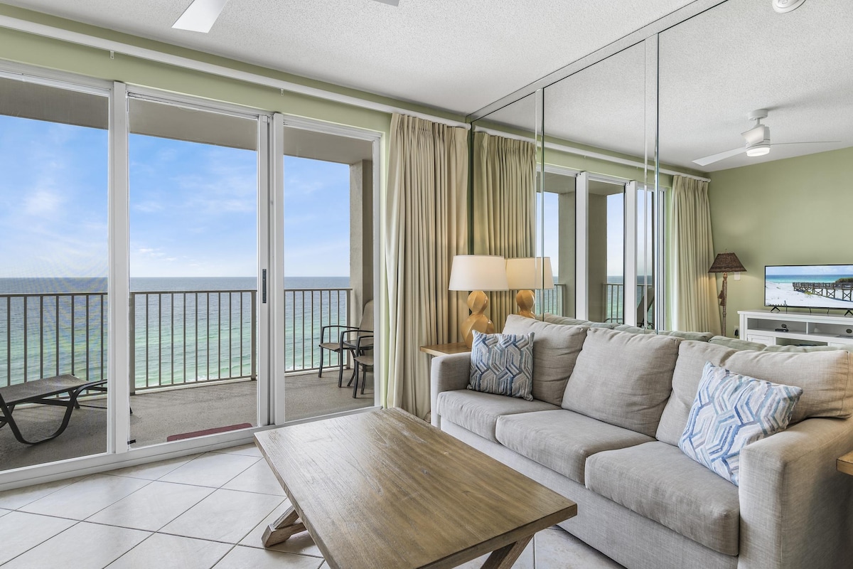 Γωνιακό διαμέρισμα μπροστά στην παραλία στο Destin - Πανοραμική θέα στον κόλπο Οι ημερομηνίες για το καλοκαίρι μόλις κυκλοφόρησαν! Ζήστε την πολυτέλεια στο παραθαλάσσιο διαμέρισμά μας στο Ντέστιν! Αυτή η μονάδα 3 υπνοδωματίων και 2 μπάνιων προσφέρει πανοραμική θέα στον Κόλπο από το σαλόνι, την κουζίνα και το κύριο υπνοδωμάτιο. Απολαύστε ένα ανακαινισμένο μπαλκόνι, θερμαινόμενη πισίνα, τένις, μπάσκετ, pickleball, γυμναστήριο και σάουνα. Περιλαμβάνονται ξαπλώστρες και ομπρέλα παραλίας από τον Μάρτιο έως τον Οκτώβριο. Βολική πρόσβαση με ασανσέρ και σκάλες. Κάντε κράτηση τώρα για το ενοικιαζόμενο κατάλυμά σας στο Ντέστιν για μια αξέχαστη απόδραση στην παραλία!