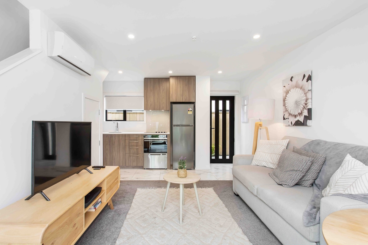 Step into this luxurious clean 1BRM nestled in Christchurch Central. Three minutes walk to supermarket, chemist, cafe and restaurants. Lounge the day away on the sunny balcony or walk around the city. Amazing five star reviews on cleanliness , location and overall stay. Exclusive Gated Free Car Park so no stress trying to find a park or worry about safety. Quiet Street Very clean Warm/cooling air conditioning Fully Equipped Kitchen Ensuite - underfloor heating Smart TV High-speed Wifi