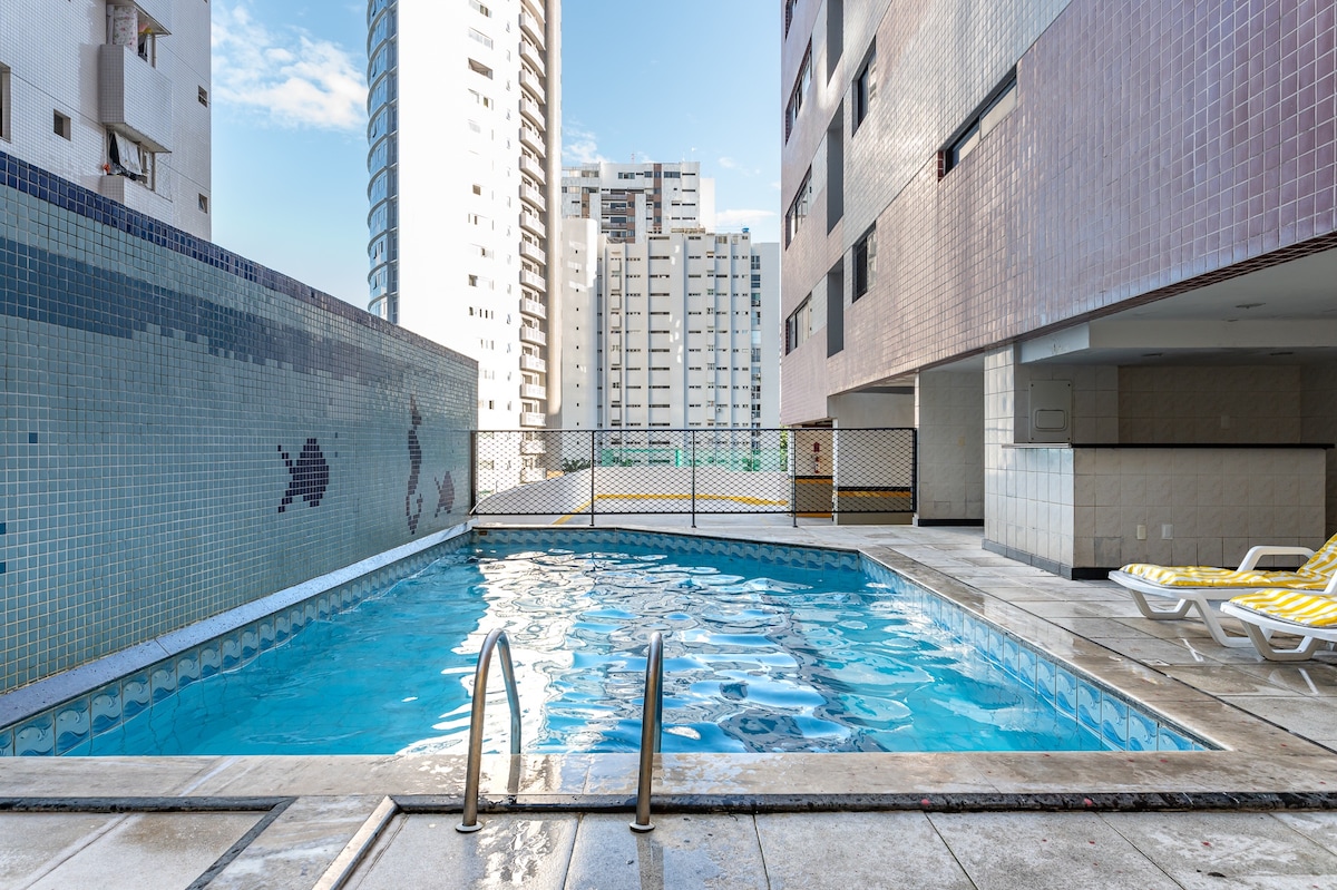 Διαμέρισμα υψηλών προδιαγραφών σε εξαιρετική τοποθεσία στην περιοχή Boa Viagem. Απέχει 200 μέτρα από την παραλία Boa Viagem, κοντά σε Shopping Recife, σούπερ μάρκετ, μπαρ, εστιατόρια, φαρμακεία και αρκετές άλλες παροχές. Το κτίριο έχει πλήρη κατασκευή, με εστιατόριο, πισίνα, γυμναστήριο, πλυντήριο, μίνι μάρκετ και χώρο στάθμευσης. Το κτίριο είναι δίπλα στο γυμναστήριο Selfit. Απέχει 1 χιλιόμετρο από το αεροδρόμιο. Έχουμε επιλογή πρωινού στο εστιατόριο για περίπου 30,00 R$ ανά άτομο.