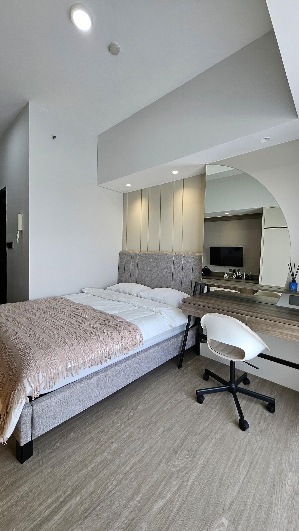 Καλώς ήρθατε στο The Reserve at Branz BSD, ένα προσεκτικά σχεδιασμένο διαμέρισμα 50 τ.μ. με ένα υπνοδωμάτιο που συνδυάζει καθαρή μοντέρνα αισθητική με ήσυχη, διακριτική πολυτέλεια. Ιδανικό για μοναχικούς ταξιδιώτες, ζευγάρια ή επαγγελματίες επισκέπτες που αναζητούν ηρεμία και άνεση. Χαλαρώστε στο άνετο σαλόνι με μια τηλεόραση 55" Smart TV, παραμείνετε παραγωγικοί στο μεγάλο γραφείο εργασίας και απολαύστε ξεκούραστες νύχτες με πλήρως συσκότιστες κουρτίνες. Κάθε λεπτομέρεια είναι προσεγμένη για μια εκλεπτυσμένη και ήρεμη διαμονή.
