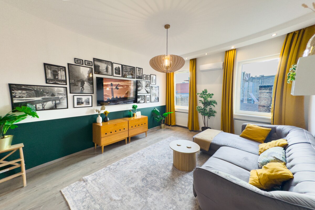 Καλώς ήρθατε σε αυτό το λαμπερό και άνετο ρετιρέ διαμέρισμα στην καρδιά της Βουδαπέστης, μόλις λίγα λεπτά με τα πόδια από την πλατεία Deák, ακριβώς στο Gozsdu Court! Αυτό το ρετιρέ διαμέρισμα σε κεντρική τοποθεσία βρίσκεται σε μια από τις πιο συναρπαστικές περιοχές, όπου όχι μόνο υπάρχουν πολλά εστιατόρια, παμπ και καφετέριες, αλλά και τα κύρια αξιοθέατα, εποχιακές υπαίθριες αγορές βρίσκονται επίσης σε κοντινή απόσταση! Το διαμέρισμα είναι πλήρως εξοπλισμένο με όλα όσα μπορεί να χρειαστείτε για τις διακοπές σας.