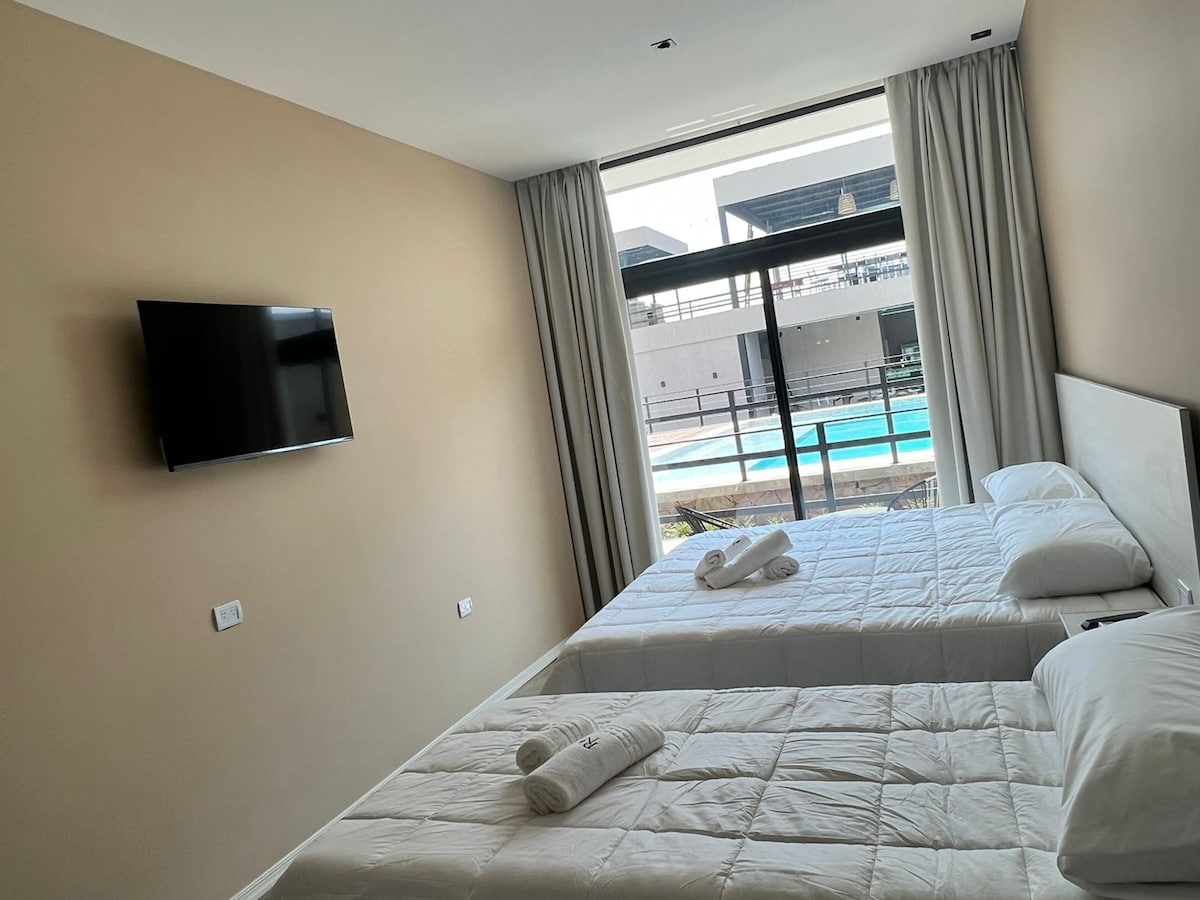 A suíte contém uma cama de casal. Possui Wi-Fi, ar-condicionado, TV smart e cofre. O banheiro privativo inclui toalhas, shampoo, condicionador, sabonete e secador de cabelo. O complexo está localizado na Avenida das Cataratas e oferece facilidades para sua conveniência. No prédio, você encontrará lavanderia self-service, casa de câmbio, agência de turismo, locação de veículos, Subway e conveniência 24 horas com caixa eletrônico para operações bancárias a qualquer momento.