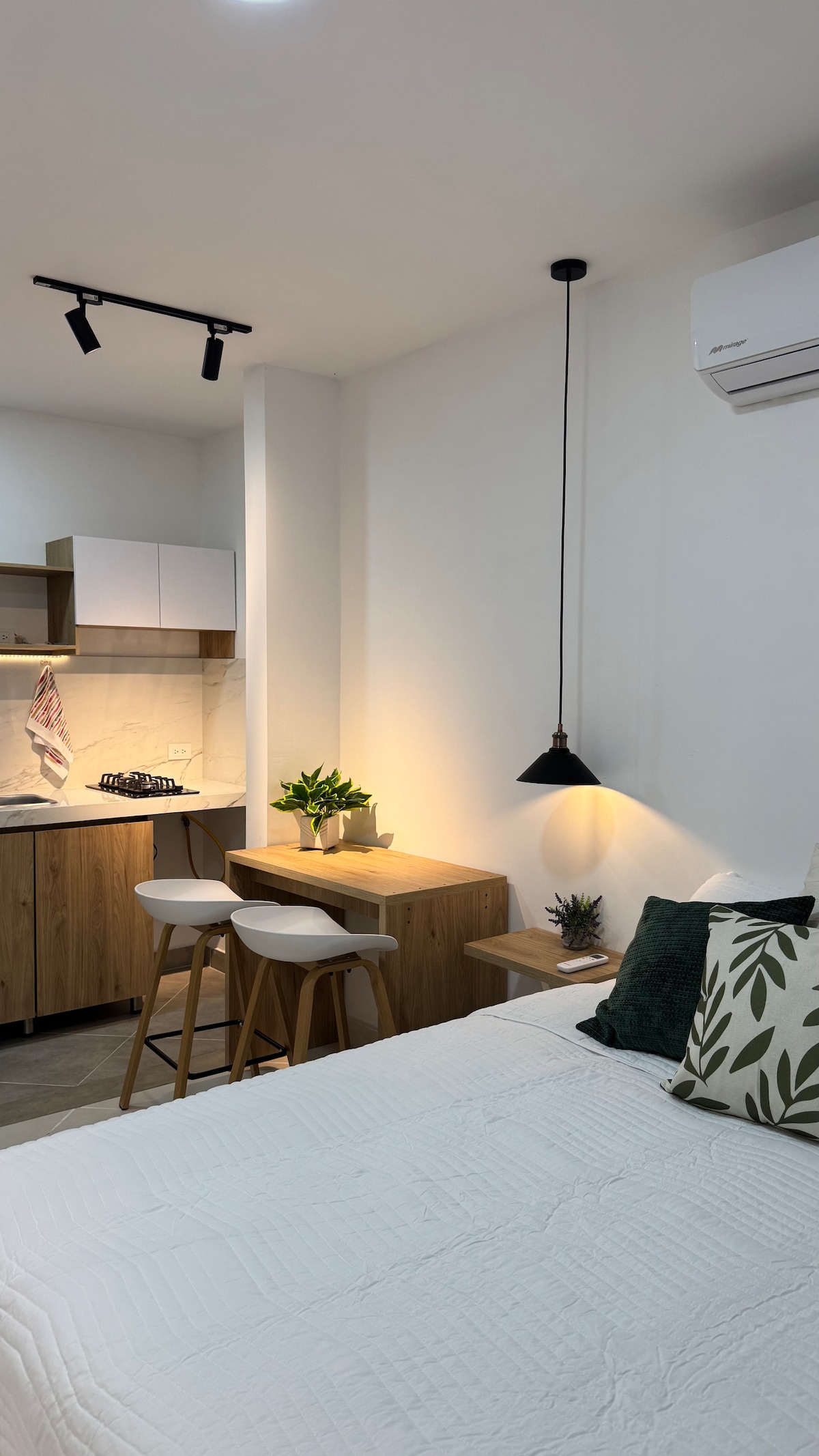 ¡Escapa al confort y la tranquilidad de un lugar exclusivo en la ciudad! ¿Buscas una estancia cómoda y relajante? Este moderno apartaestudio te ofrece todo lo que necesitas, está ubicado en un sector exclusivo y seguro de la ciudad, con acceso cercano a la naturaleza y a 5 minutos de centros comerciales. Tendrás el balance perfecto entre paz y comodidad. Cuenta con una cama doble, una cama extraíble semidoble y opción a colchoneta extraible adicional, perfecto para parejas o familias pequeñas.