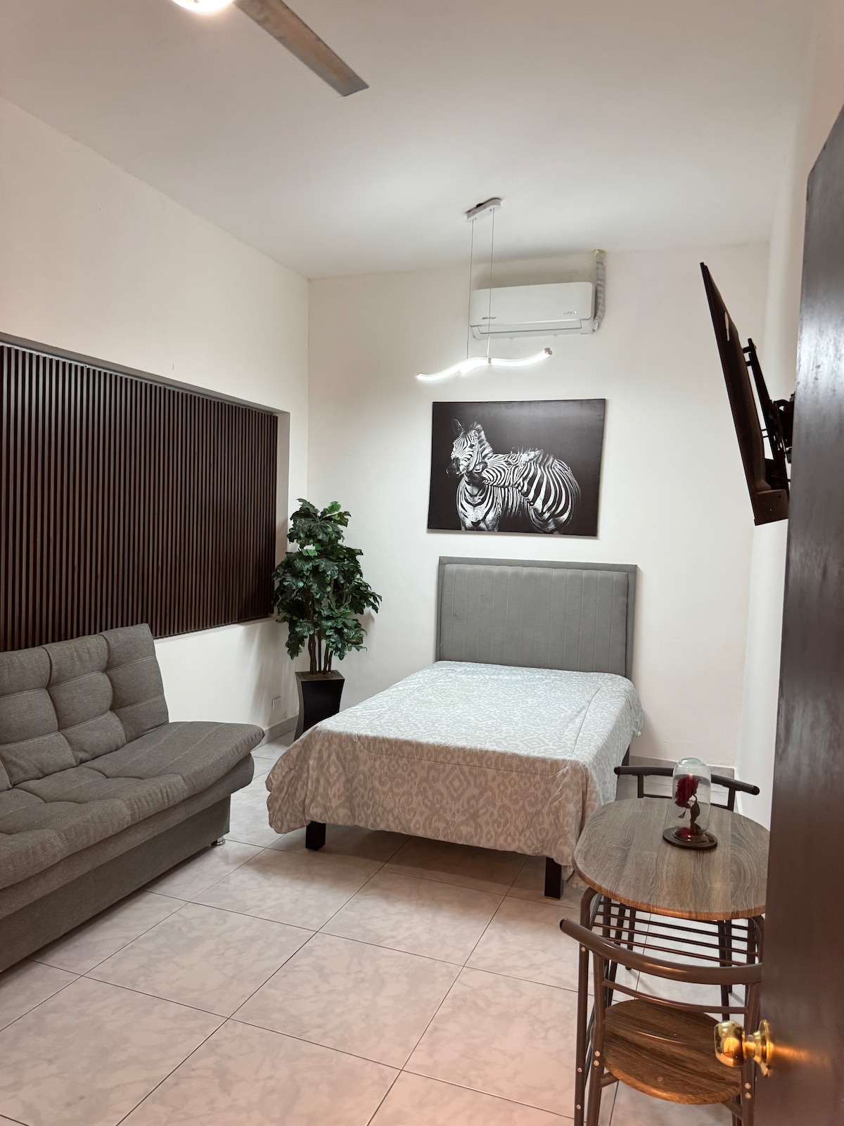 Απολαύστε την απλότητα αυτού του ήσυχου και κεντρικού μέρους. Διαμέρισμα που βρίσκεται στο κέντρο της πόλης, διαθέτει υπνοδωμάτιο, δικό του μπάνιο, σαλόνι, κουζίνα, πάρκινγκ και πισίνα στον κοινόχρηστο χώρο. *Δεν επιτρέπονται τα πάρτι. * Ώρες πισίνας: 10 π.μ. έως 9 μ.μ.