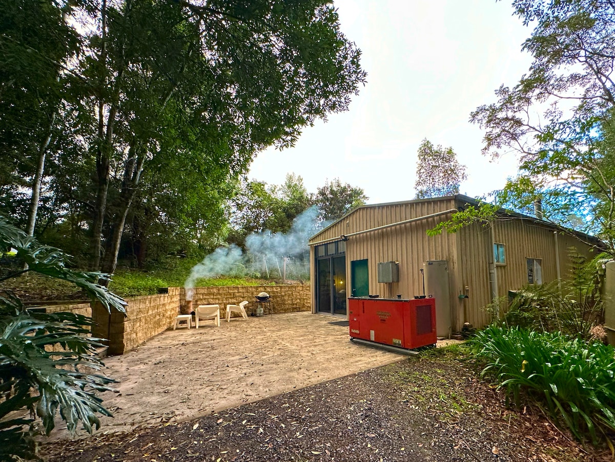 Μια γαλήνια, ειρηνική, πολυτελής, ιδιωτική εμπειρία για ζευγάρια στο γαλήνιο και θεϊκό καταφύγιο της Γης της Επαγγελίας, λίγο έξω από το ιδιόμορφο Bellingen. Θέα στη χερσόνησο Γκοντβάνα. Ξυπνήστε με το κελάηδισμα των πουλιών. 5 λεπτά από τις τρύπες κολύμβησης του ποταμού Never Never. Πλήρως κλιματιζόμενο, γαλήνιο υπαίθριο μπάνιο με κερί, ντους βροχής, τζάκι εξωτερικού χώρου και εσωτερικό τζάκι (μόνο για χειμερινή χρήση), πλυντήριο πιάτων, μπάρμπεκιου, τηλεόρα HD, Netflix, απεριόριστο ίντερνετ Starlink, σπιτικό ψωμί. Μοναξιά! Επιδοκιμάστε!