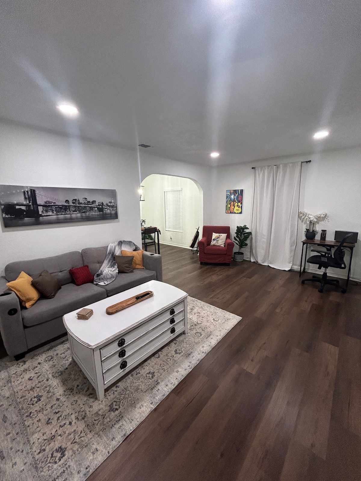 Καλώς ήρθατε στη βίλα Agave Azul, μια ζωντανή και ευρύχωρη απόδραση κοντά στα I-40, Water-Zoo, Route 66 Museum και McLain Rogers Park. Ιδανικό για οικογένειες, ομάδες και επαγγελματίες που ταξιδεύουν για να μοιράσουν το κόστος. Απολαύστε μια ιδιωτική αυλή, μια τραπεζαρία που μετατρέπεται σε πισίνα και τραπέζι πινγκ πονγκ, μια πλήρως εξοπλισμένη κουζίνα και μια έξυπνη τηλεόραση 55ιντσών. Με άνετα κρεβάτια, δύο πλήρη μπάνια και μια προνομιακή τοποθεσία, είναι το ιδανικό σπίτι μακριά από το σπίτι σας. Κάντε κράτηση για τη διαμονή σας σήμερα!