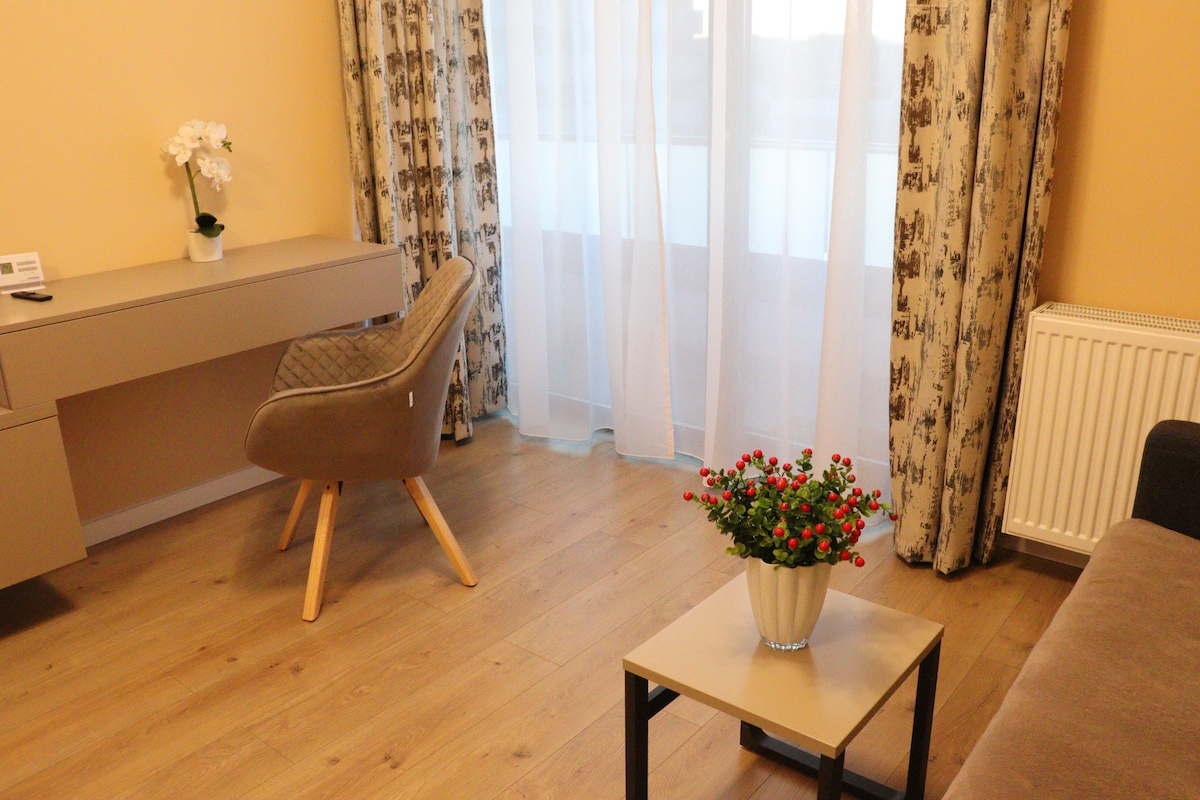 Καλώς ήρθατε στο ευρύχωρο μοντέρνο διαμέρισμά σας 60 τ.μ. Ιδανικό για διαμονές μεγάλης διάρκειας, αυτό είναι το τέλειο δεύτερο σπίτι σας! Απέχετε λίγα μόνο βήματα από τον κεντρικό σιδηροδρομικό σταθμό και μόλις 5 λεπτά από το κέντρο της πόλης, με γρήγορη πρόσβαση σε γραμμές τραμ και λεωφορείων. Θα είστε κοντά σε δύο πρόσφατα ανακαινισμένα πάρκα και το ίδιο το συγκρότημα διαθέτει ένα ήσυχο πάρκο δίπλα στο ποτάμι, μια καφετέρια, γυμναστήριο, εστιατόριο και ιατρικό κέντρο. Θα έχετε δωρεάν υπόγειο χώρο στάθμευσης και εύκολη άφιξη χωρίς την παρουσία οικοδεσπότη για μια διαμονή χωρίς άγχος.
