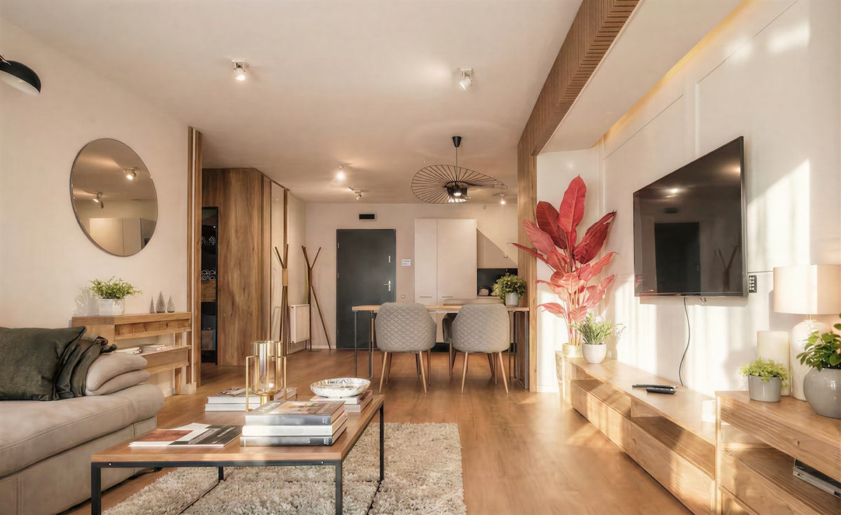 Traveling for business or in need of a professional, comfortable space near Cluj Airport? This fully equipped apartment is located just 5 minutes away and offers everything you need for a productive and restful stay. Self check-in, high-speed Wi-Fi, and premium amenities included. Designed with business travelers in mind, the apartment combines sleek, modern interiors with smart features and a quiet environment, ideal for work and relaxation. Enjoy a high-standard accommodation experience.