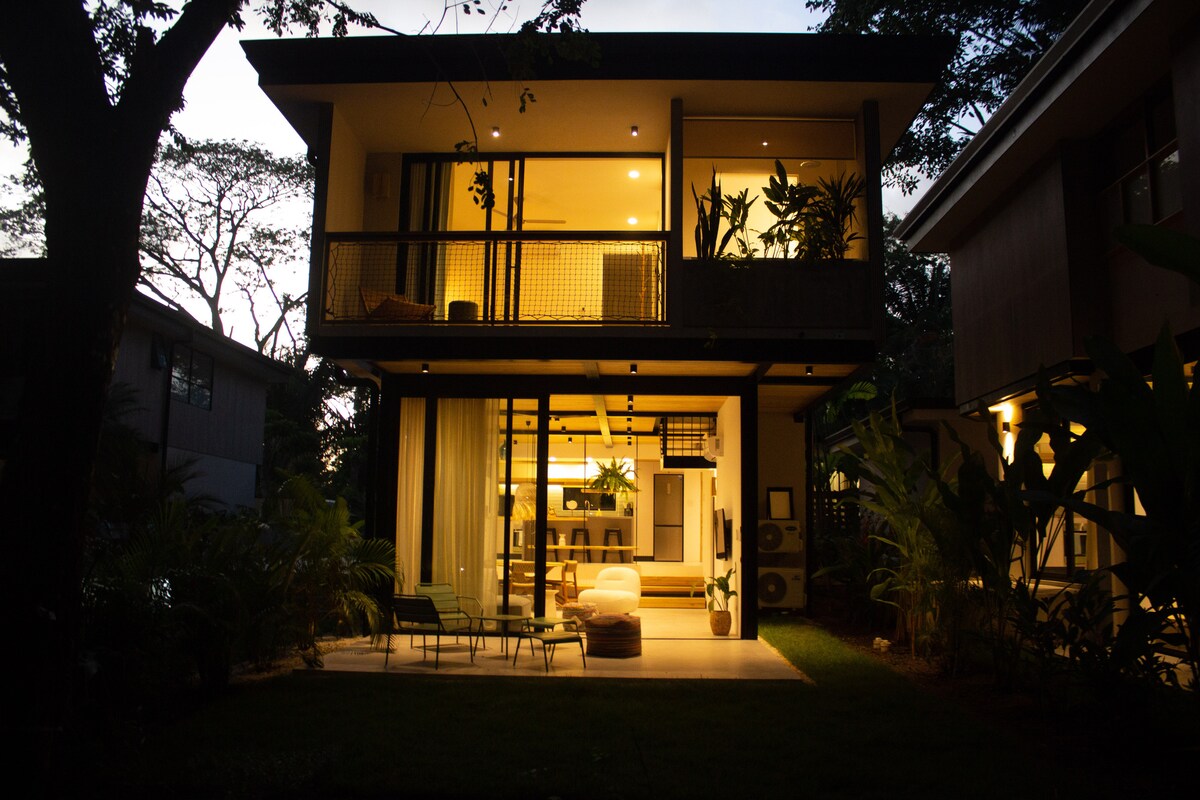 Welcome to Aysana Jungle House, a modern home nestled in the heart of nature, just 5 minutes by car from the beaches and the center of Santa Teresa. Perched above the jungle canopy, the house offers stunning views of the jungle and the ocean, with beautiful sunsets. Designed for a relaxing stay, the house combines clean design, comfort, and serenity. It can accommodate up to 4 guests and provides everything you need to feel at home, surrounded by nature.