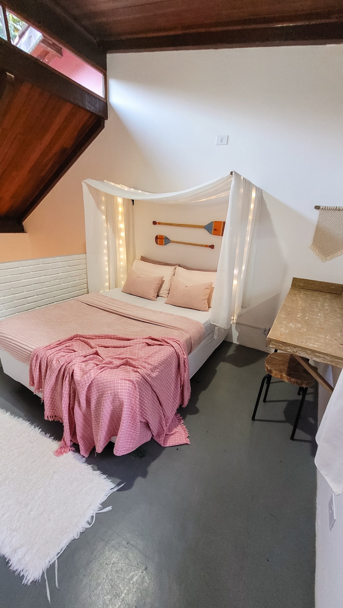 Σαλέ για ζευγάρια με κρεβάτι queen. Ιδιωτική κουζίνα και μπάνιο. Κλιματισμός. Απλότητα με ζεστασιά και καλό γούστο. Εξαιρετική τοποθεσία, 90 μέτρα από το Yacht Club Ilhabela, 400 μέτρα από την προβλήτα 151 και 500 μέτρα από το χωριό (ιστορικό και τουριστικό κέντρο της Ιλχαμπέλα), όπου βρίσκονται τα εστιατόρια, τα μπαρ, τα κλαμπ και οι παραστάσεις του νησιού. Κοινόχρηστο γκαράζ με το μπροστινό σπίτι που βρίσκεται στο ίδιο οικόπεδο.
