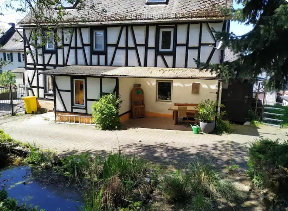 Restored with love... Enjoy a leap into the cold Maar (30m), a sundown at the castle (80 m), hiking, cycling or visit the famous Nürburgring (18 km). The house joins old with modern and offers 110 m² with a big kitchen/dining room with balcony, a cosy living room with 2 convenient bed couches, one sleeping room with double bed and bathroom, one sleeping room with 4 single beds and a second bath downstairs.