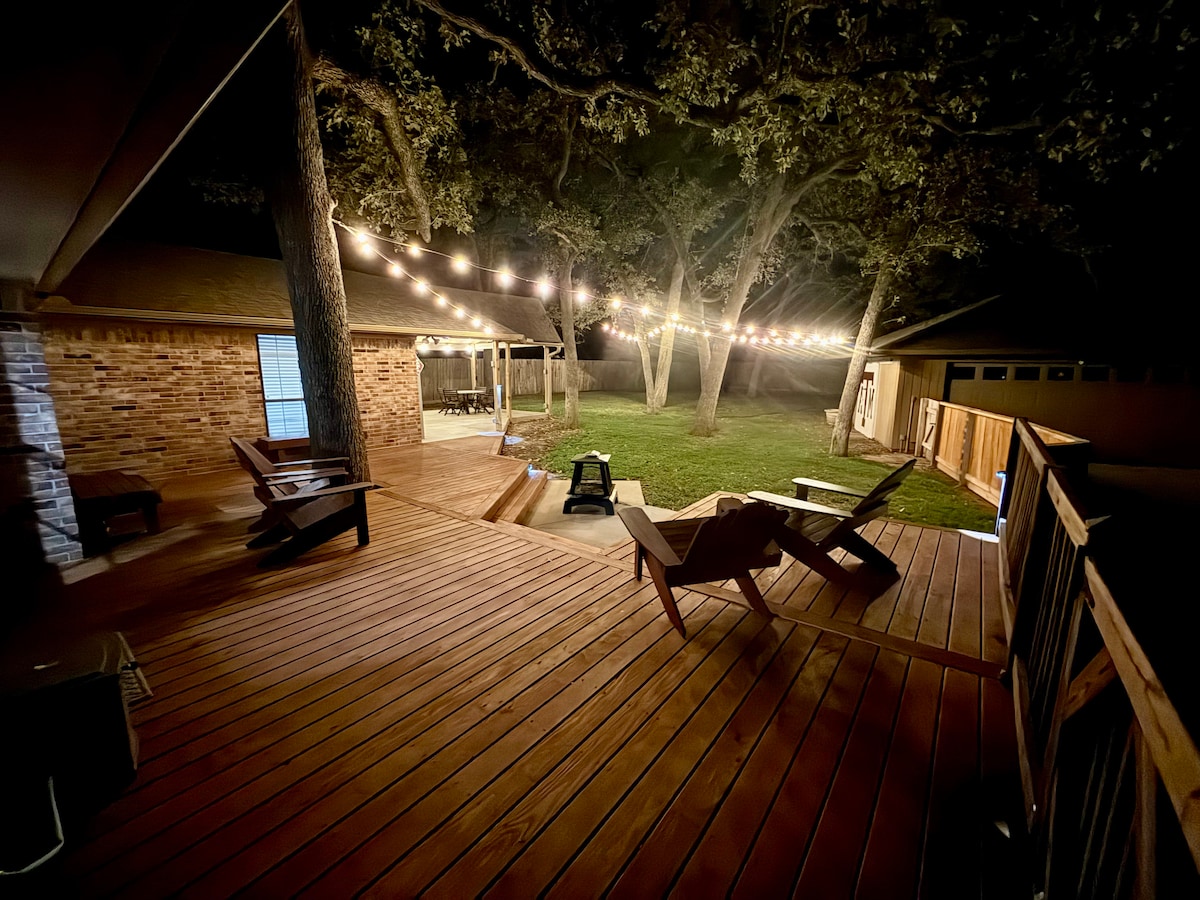 Καλώς ήρθατε στο Howdy Home στην γοητευτική ιστορική συνοικία του Bryan - μόλις 10 λεπτά με τα πόδια από το κέντρο του Bryan. Ιδανικό για επισκέψεις στο Texas A&M (μόλις 6 μίλια μακριά) ή στο Legends Event Center (7 λεπτά μακριά). Απολαύστε εύκολη άφιξη/αναχώρηση χωρίς παρουσία οικοδεσπότη, πλήρως εξοπλισμένη κουζίνα και ιδιωτική πίσω αυλή με τζάκι εξωτερικού χώρου + παιχνίδι με τσάντες. Χαλαρώστε με τηλεόραση 65 ιντσών και ήχο Sonos. Φιλοξενεί 6 άτομα: 1 υπέρδιπλο, 1 διπλό, 2 μονά. Κάντε κράτηση για μια χαλαρωτική απόδραση στο Bryan!