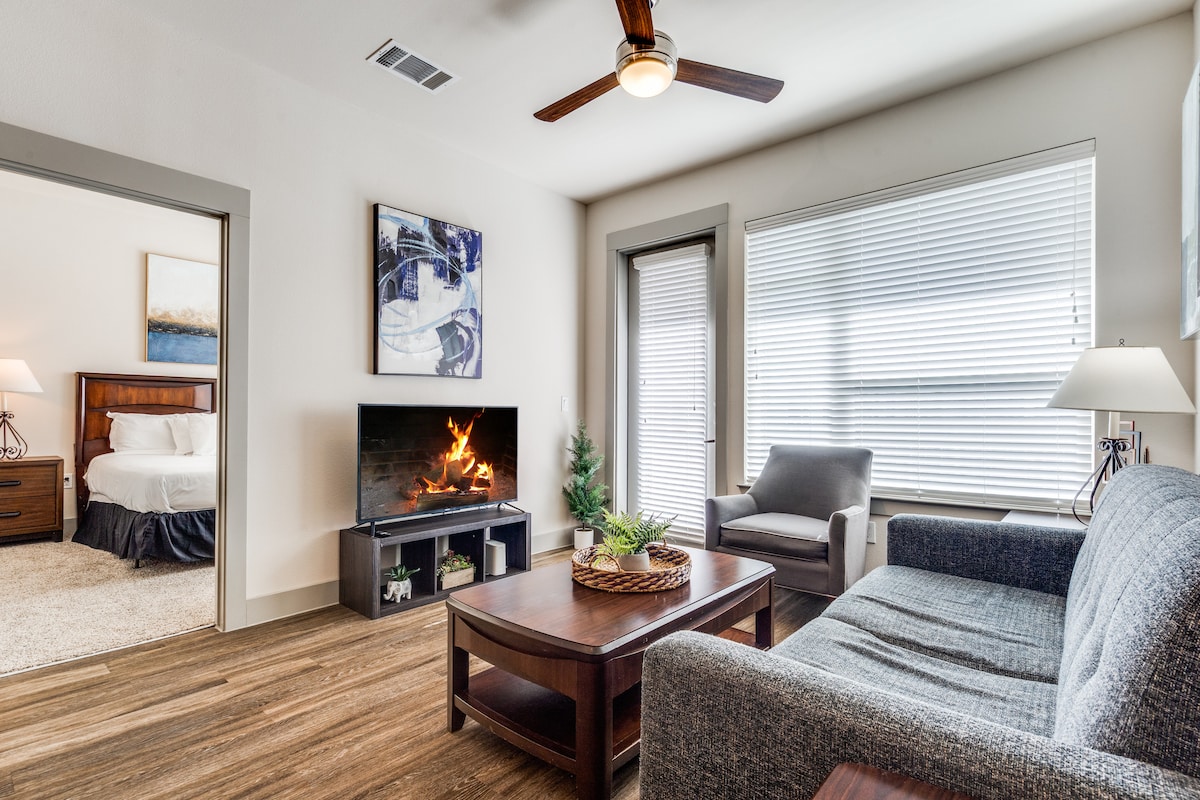 ✨ Ειδική προσφορά για το Νέο Έτος – Ιδανικό για επαγγελματικά ταξίδια και χειμερινές αποδράσεις! ✨ Ξεκινήστε τη χρονιά με άνεση σε αυτό το ήσυχο διαμέρισμα στην πλατεία Frisco! Απολαύστε κομψή διακόσμηση, ένα άνετο καφέ μπαρ και παροχές σε στιλ θέρετρου: πισίνα, γυμναστήριο, σαλόνι με αθλητικό εξοπλισμό, ψησταριές και αυλή. Ιδανικό για επαγγελματικές διαμονές, οικογενειακές επισκέψεις ή χαλάρωση μετά από μια κουραστική μέρα - κοντά σε εστιατόρια, καταστήματα και το στάδιο Toyota 🏟️ 🎉 Κάντε κράτηση τώρα και κάντε την Πρωτοχρονιά σας αξέχαστη! 🥳