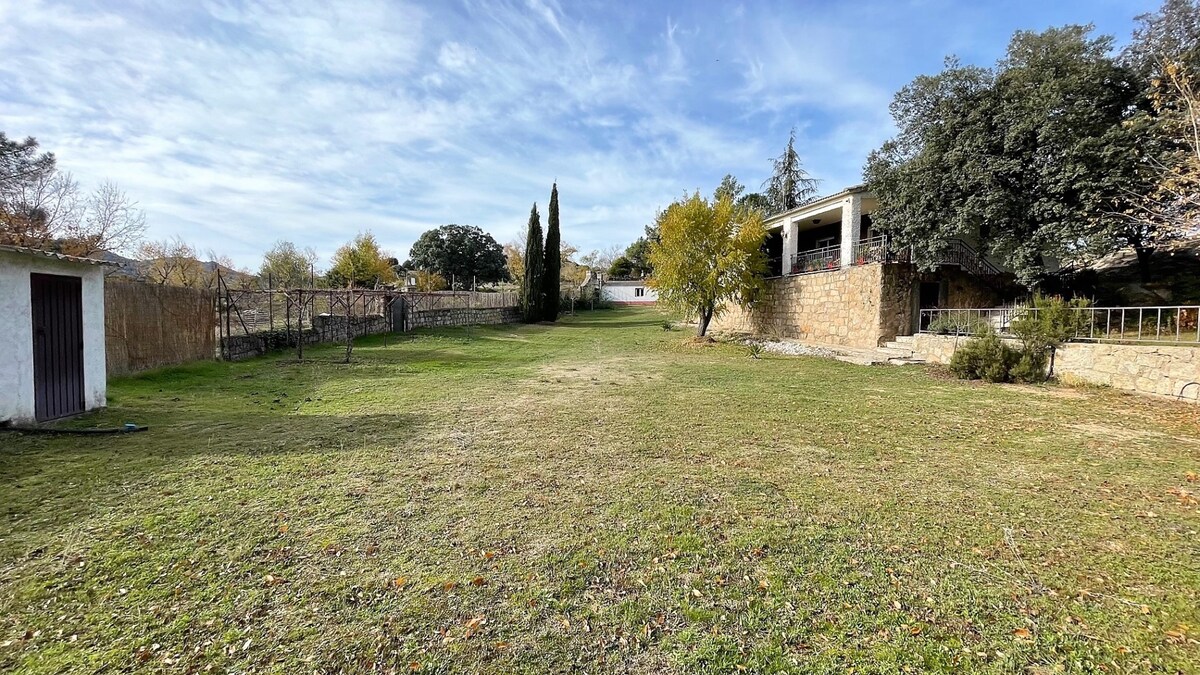 Ένα όμορφο ανακαινισμένο σπίτι από τη δεκαετία του '60 σε ένα μεγάλο οικόπεδο 1500 τ.μ. με ιδιωτική πισίνα και μεγάλα δέντρα. Ηρεμία και ιδιωτικότητα στην καρδιά του δάσους σε ένα από τα πιο όμορφα χωριά της Sierra de Madrid. Μπορείτε να περπατήσετε για μέρες μέσα από τα δάση και τα βουνά του Εθνικού Πάρκου Guadarrama από την πόρτα σας. Ιδανικό για δύο οικογένειες. Πλήρως εξοπλισμένο με γοητευτικό τρόπο. Τζάκι, μπάρμπεκιου υγραερίου, πινγκ πονγκ, τραμπολίνο, τσουλήθρα, καλάθι μπάσκετ, Wi-Fi και άλλα