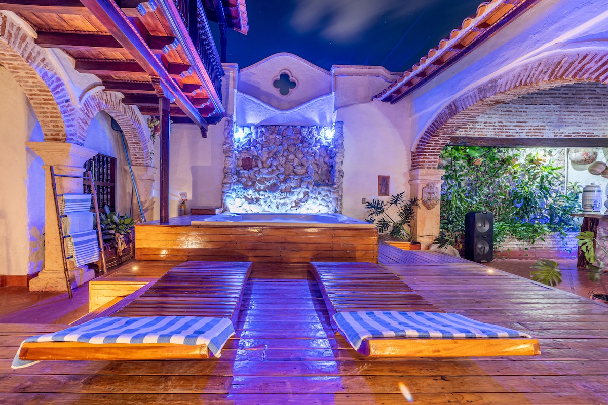 Πολυτελής αποικιακή βίλα στο Getsemaní με προσωπικό 24 ώρες το 24ωρο, 7 ημέρες την εβδομάδα για καθημερινό καθαρισμό δωματίων και ασφάλεια. Αυτό το εμβληματικό κατάλυμα 6BR διαθέτει ιδιωτική πισίνα, ταράτσα και καθημερινό πρωινό. Βρίσκεται λίγα βήματα από το Café Havana και συνδυάζει αρχιτεκτονική 200 ετών με μοντέρνο σχεδιασμό για μια αξέχαστη διαμονή στην Καρταχένα. Αναγνωρισμένο από την Airbnb για την ύπαρξη μιας από τις καλύτερες πισίνες στον κόσμο και παρουσιάζεται σε διεθνείς δημοσιεύσεις αρχιτεκτονικής και lifestyle.