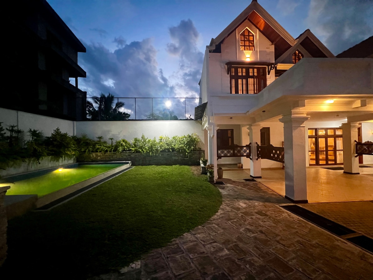 Καλώς ήρθατε στη βίλα Red Rocks – το άνετο, πολυτελές καταφύγιό σας! 🏡 Βρίσκεται στο γαλήνιο αστικό αδιέξοδο της Rajagiriya, λίγα λεπτά μακριά από την καρδιά του Κολόμπο. Είναι ιδανικό για οικογένειες ή ομάδες έως 9 ατόμων που αναζητούν μια χαλαρωτική απόδραση🌳. - 2 υπνοδωμάτια με κλιματισμό και ιδιωτικό μπάνιο σε κάθε όροφο και 3 ακόμη υπνοδωμάτια με κλιματισμό, άνετα κρεβάτια 🏨 και ντουλάπες. - Πλήρως εξοπλισμένη κουζίνα με ανοιχτή τραπεζαρία. - Πλυντήριο και στεγνωτήριο για ευκολία. Καλά ταξίδια!