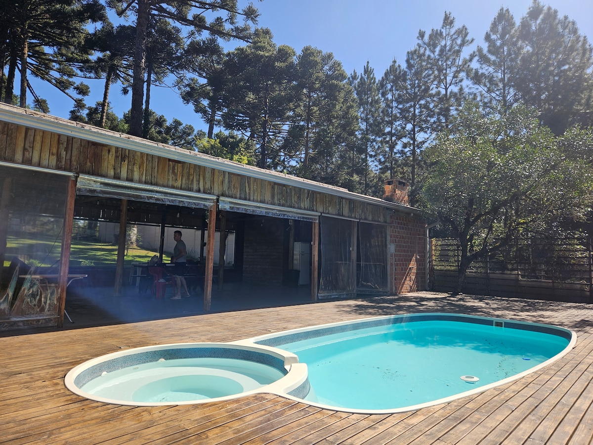 Χαλαρώστε και γιορτάστε με την οικογένεια, τους φίλους ή/και την παρέα σε αυτή τη μεγάλη και ήσυχη Chácara. 4 υπνοδωμάτια, άνετο σαλόνι με 2 δωμάτια, μεγάλος πτυσσόμενος καναπές, τηλεόραση, ηλεκτρικό τζάκι, εξοπλισμένη κουζίνα. Μεγάλος γκουρμέ χώρος με ψησταριά στο σπίτι, ξυλόσομπα, τεράστιο τραπέζι, μπάνια πισίνας. Εσωτερική πισίνα με θερμαινόμενο τζακούζι συνδεδεμένο με τον χώρο γκουρμέ. Χώρος άσκησης. Μπαλκόνι με Wi-Fi για όσους χρειάζεται να εργαστούν. Μόνο 25 λεπτά από το εμπορικό κέντρο Mueller.