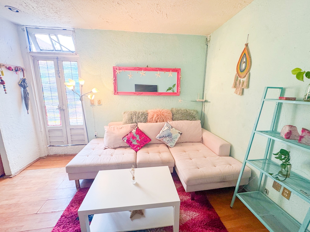 Πρόκειται για μια εξαιρετική και πολύ άνετη σοφίτα με βεράντα που έχει όλα όσα χρειάζεστε για να νιώσετε σαν στο σπίτι σας και ίντερνετ υψηλής ταχύτητας. Βρίσκεται σε μια πολύ κεντρική, ασφαλή και ήσυχη περιοχή της πόλης, όλες οι υπηρεσίες σε κοντινή απόσταση (κινηματογράφοι, εμπορικά κέντρα, σούπερ μάρκετ,τράπεζες,εστιατόρια, μπαρ, καφετέριες, χώροι πρασίνου, μουσεία) από αυτήν τη στρατηγική τοποθεσία μπορείτε εύκολα να μετακινηθείτε σε οποιοδήποτε μέρος της πόλης με τα μέσα μαζικής μεταφοράς. 20 λεπτά από το Διεθνές Αεροδρόμιο Benito Juarez.