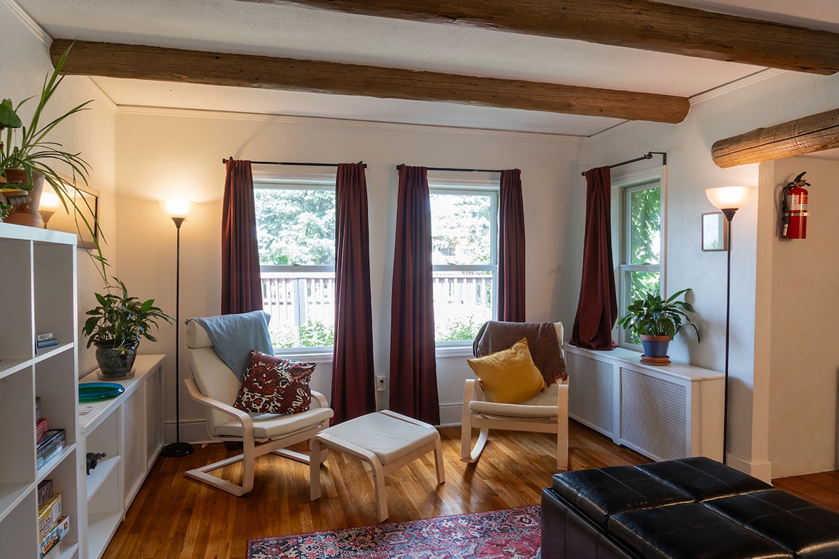 *Queen bed with memory foam *Lounging couch is Queen Bed *Full kitchen & appliances *Walk-in shower *No Pets, No Smoking *5 Blocks to local coffee cafe *Exercise & Recovery: mat, bands, roller, yoga *Washer & dryer *Patio w/ gas grill *Families: pack n play, booster seat Nearby: -5 blks to Memorial Hosp Central -0.6 mi to Olympic Tr Center -1 mi NE of Downtown -2 blocks to Park -10 mi to COS Airport -6 mi to GofGods -7 mi to Manitou Spgs Hosted by local owners STR Permit A-STRP-25-1003