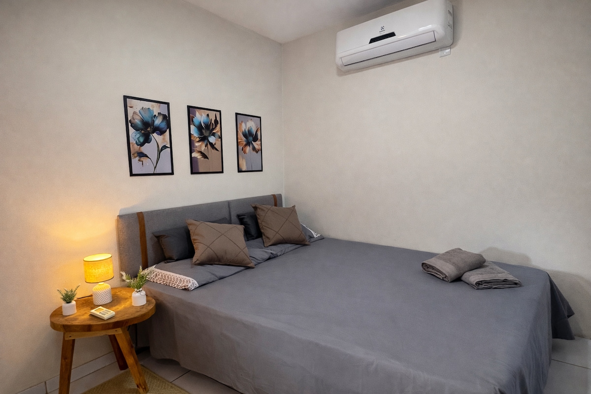 Independent accommodation with air conditioning, Wi-Fi, television, bathroom, queen-size bed, kitchenette, private patio with kitchen area and barbecue. Starting in July 2025, the Residência is equipped with a private pool and jacuzzi for a high-end experience. La Concha Beach is a 1-minute walk from the accommodation. The La Concha neighborhood in Itacaré is a quiet place with a shared ocean and nature. The accommodation is close to all amenities, shops, beaches, and the city center.