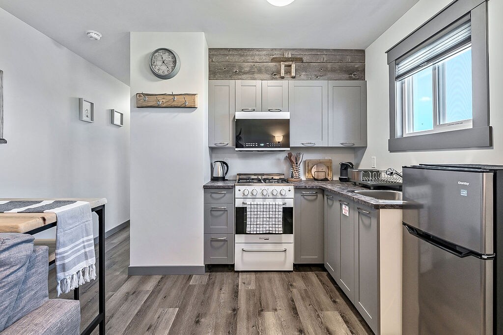 This contemporary new space features a ground level private entrance and easy access to all the amenities that the Hamlet of Bragg Creek has to offer. Walk a block to one of the wonderful restaurants, pubs, and shops or wander down to the Elbow River. Hiking, cross-country skiing, snowshoeing, and fat-biking in West Bragg Creek and Kananaskis Country are 15 minutes away by car. Only a 25 minute drive to downtown Calgary and 45 minutes to the airport. Banff and Canmore are only an hour away.