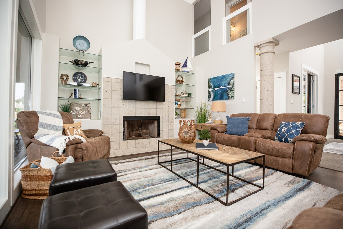 Waterfont lake house was professionally decorated and was outfitted by heavy users of short term rentals so it has the best little “extras” found from traveling all around the world. The kitchen has been used for family Thanksgiving dinners and we have hosted numerous small family reunions. The sunsets are spectacular and the location can’t be beat—no fast boats or jet skis (we are on a no wake zone) so swimming and lazy lounging on the water is wonderful. Come enjoy the lake life!