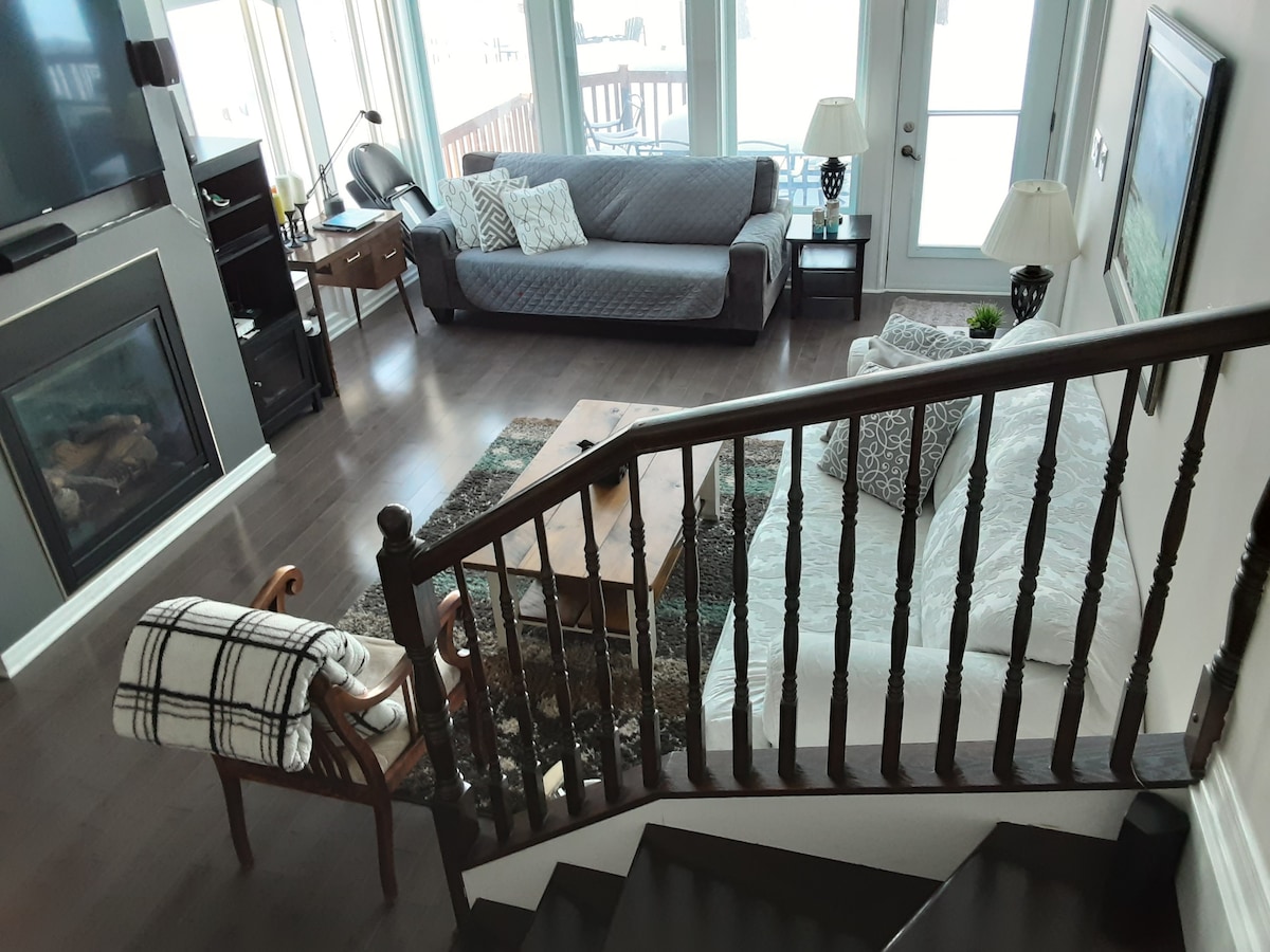 A romantic getaway or a family vacation, our lovely three bedroom house retreat with its own private beach, is located on the beautiful Ottawa river overlooking the Gatineau Hills. This beachfront oasis in Constance Bay, Ottawa offers stylish accommodations. Enjoy long walks in the Torbolton Forest, on the beach, swimming and fishing in the summer and winter, or just use our canoe/ paddle boat/ Kayak to explore. Relax under the covered Gazebo, sundeck and a balcony from the Master Bedroom.