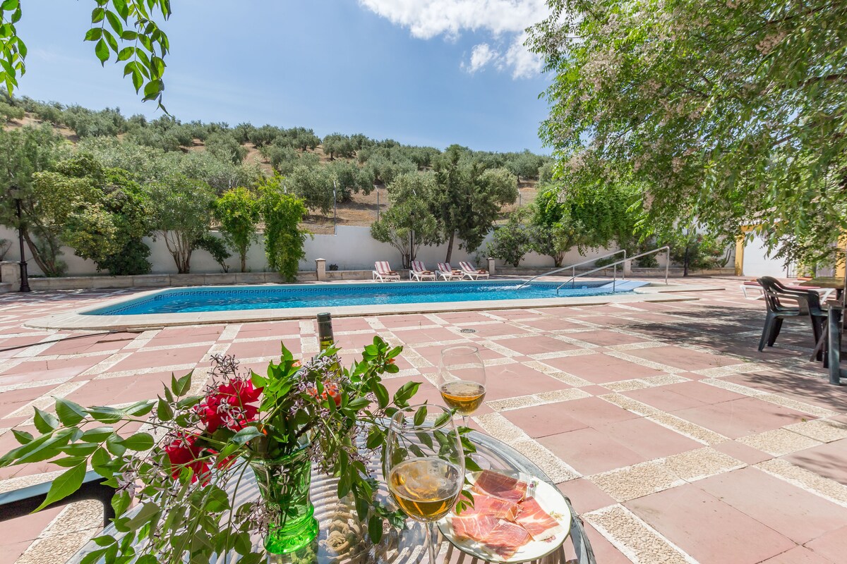 One of three charming cottages in a converted cortijo sharing a stunning pool overlooking rural olive groves. Guide book recommended by Alastair Sawday peace and tranquility combined with access to the cultural centres of Granada, Cordoba, Malaga and Antequera. During 2020 due to Covid19 cleaning protocols, you will not share any communal areas with other guests - you will have the whole cortijo to yourselves!