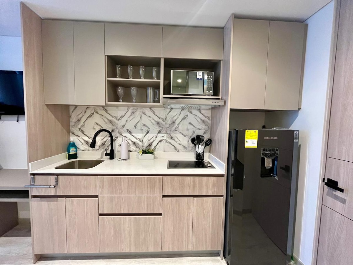 🌆✨ Bienvenido a tu espacio moderno en la ciudad. Ubicado en un edificio nuevo estilo boutique, este apartaestudio combina comodidad, diseño y funcionalidad. Disfruta de cama tipo hotel, sofá cama, WiFi rápido, Smart TV, cocina equipada, lavandería, parqueadero y seguridad 24/7. El edificio ofrece coworking moderno, lobby elegante, áreas sociales inspiradoras y una vista urbana increíble. 🐾 Pet-friendly, perfecto para todo tipo de viajeros. Parqueadero privado valor por noche $20.000