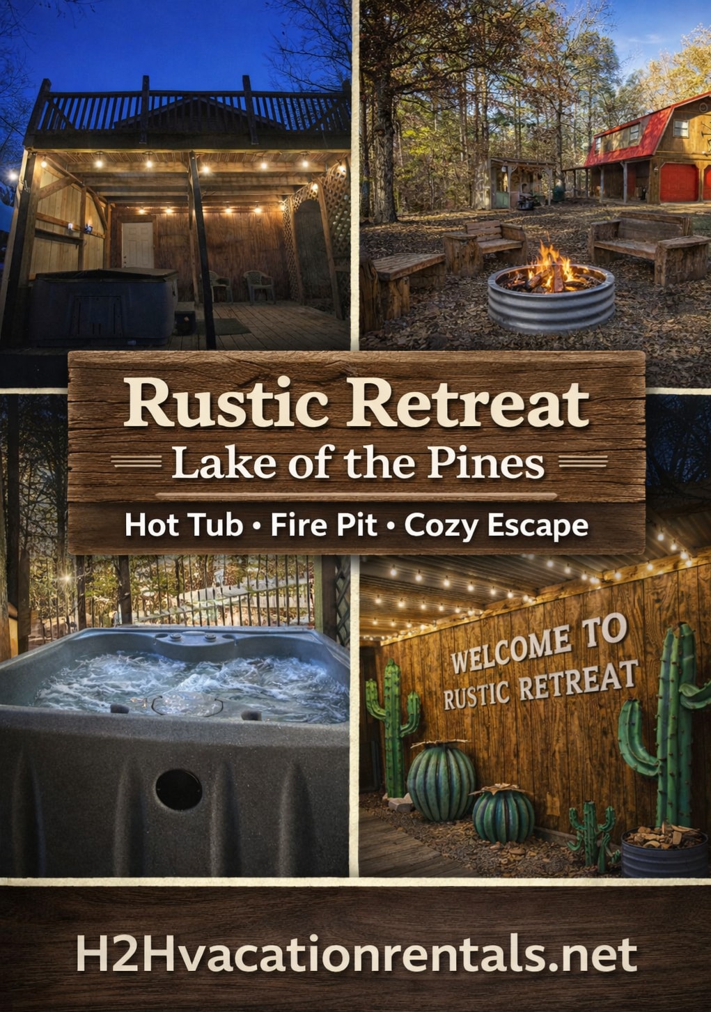 Καλώς ήρθατε στο άνετο σπίτι μας στη λίμνη των πεύκων! Απολαύστε μαγευτικά ηλιοβασιλέματα και αλιευτικές ευκαιρίες. Απολαύστε άφθονα ελάφια και φαλακρούς αετούς. Το σπίτι μας διαθέτει ένα τεράστιο κατάστρωμα με θέα στη λίμνη, ιδανικό για χαλάρωση. Το ανακαινισμένο σπίτι διαθέτει νέα έπιπλα και συσκευές, κρεβάτια με αφρό μνήμης, πλήρως εξοπλισμένη κουζίνα και καφέ μπαρ για την άνεσή σας. Ψήστε νόστιμο φαγητό στη σχάρα αερίου και μαζευτείτε γύρω από το τζάκι για ένα άνετο βράδυ ή επισκεφτείτε το ιστορικό Jefferson TX. Ελπίζουμε να απολαύσετε τη διαμονή σας!