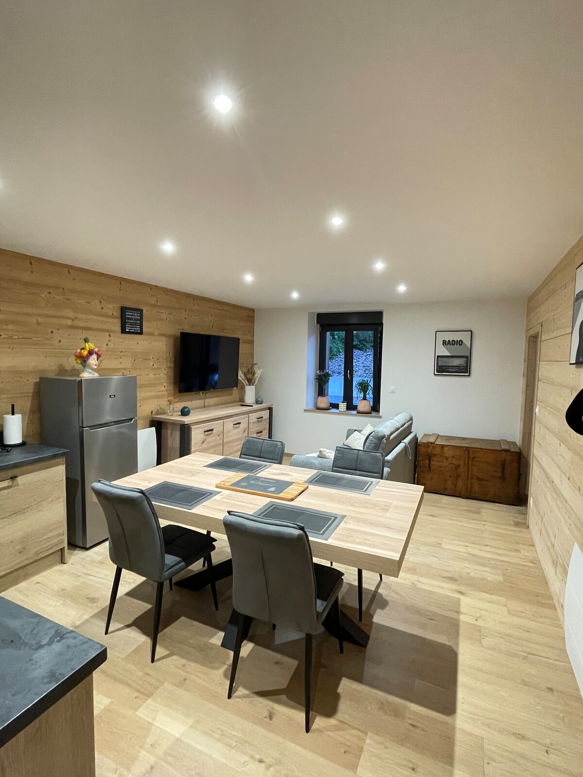 Nous avons le plaisir de vous proposer un logement de 70m² en duplex entièrement rénové au printemps 2023 à 10 minutes de La Bresse et 25 minutes de Gérardmer. La jardin privatif propose une vue sur la forêt et dispose d'une table et d'un BBQ. Local à vélo / ski à disposition. 2 étangs à 5 minutes de marche de Nombreux départs de randonnées et VTT depuis l’appartement. Bar/Restaurant proche du logement. Les draps et linge de toilettes sont compris dans le tarif indiqué. Gite de France **