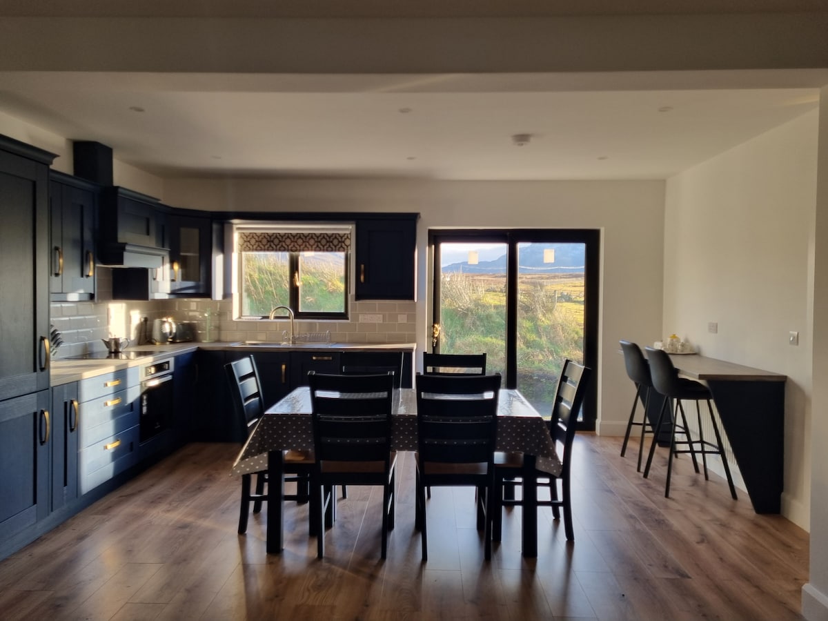 3 bedroom bungalow situated at the foot of Croagh Patrick in the picturesque village of Lecanvey. With fabulous views across Clew bay from the Kitchen/diner and front room & beautiful views of Croagh Patrick from the back. 10 minute walk to Lecanvey Pier, beach church and pub. 7km to the town of Louisburgh which has gorgeous blue flag beaches (Old Head, silver strand) and 14km to the pretty vibrant town of Westport, where you will be spoilt for choice of bars and restaurants.,