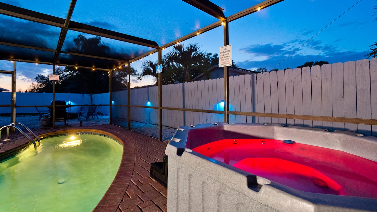 Καλώς 🌴ήρθατε στο Beachway Haven! Αυτό το ⭐️ καταφύγιο 5 αστέρων απέχει μόλις λίγα λεπτά από τις παρθένες παραλίες του νησιού Anna Maria και τον Κόλπο του Μεξικού. Βουτήξτε στη χαλάρωση με τη δική σας θερμαινόμενη πισίνα αλμυρού νερού και το τζακούζι σπα, που βρίσκεται σε μια τροπική όαση. Μόνο ένα βήμα μακριά από γήπεδα γκολφ, φυσικά πάρκα, την Ακαδημία IMG και την πρόσβαση στην παραλία Palma Sola Causeway – η πύλη σας για ιππασία, καγιάκ και ατελείωτες αμμώδεις περιπέτειες. Τα ψώνια και τα εστιατόρια απέχουν επίσης μόνο λίγα λεπτά!