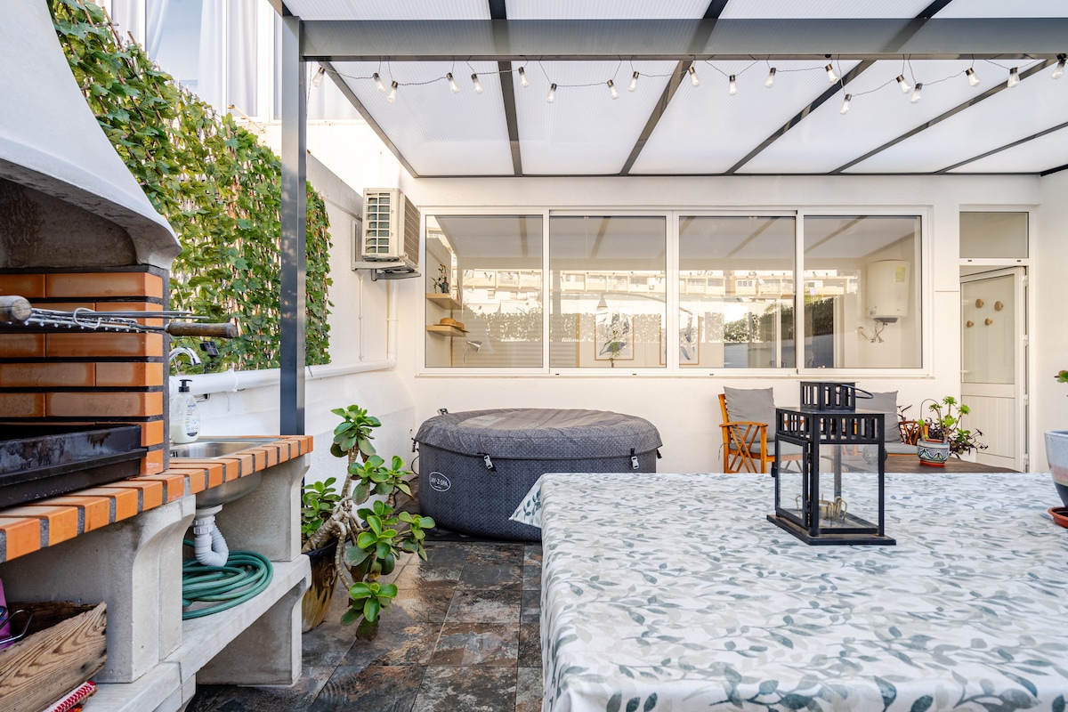 Ανακαλύψτε την άνεση με μεσογειακό στιλ σε αυτήν την κομψή βίλα στη Santa Bárbara de Nexe. Λίγα λεπτά από το αεροδρόμιο Faro και το Almancil, διαθέτει τζακούζι στην ταράτσα, εξωτερική κουζίνα και κομψό εσωτερικό-εξωτερικό χώρο. Περιτριγυρισμένο από τη φύση με κοντινά μονοπάτια πεζοπορίας και θέα στην ύπαιθρο, είναι ιδανικό για οικογένειες ή παρέες. Κοντά σε παραλίες, γήπεδο γκολφ και εστιατόρια.