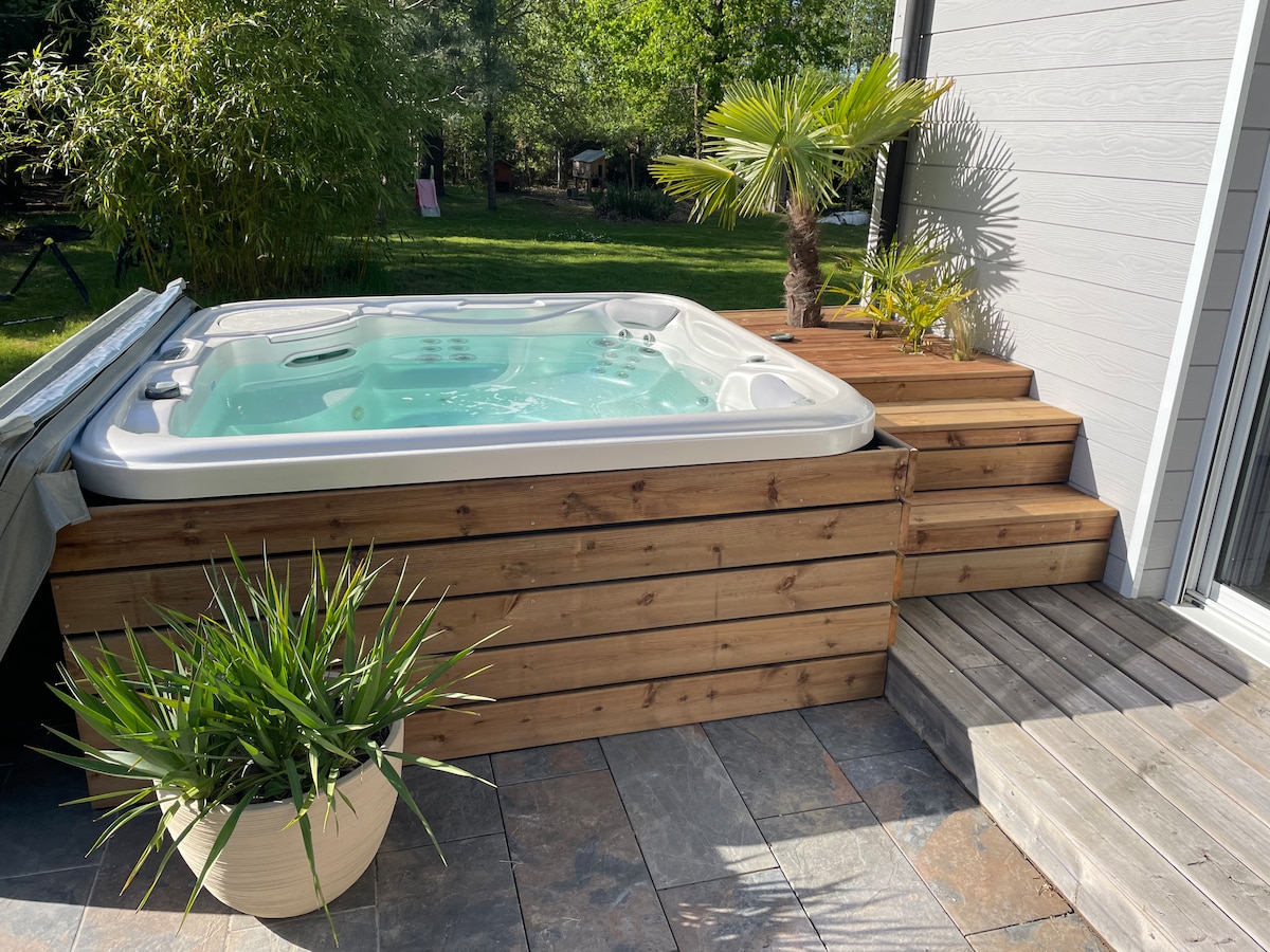 Maison bois et jacuzzi en pleine nature et forêt