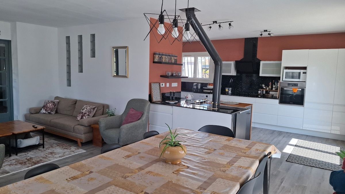 "Η φωλιά των ερωτευμένων" είναι το ιδανικό μέρος για ζευγάρια που αναζητούν χαλάρωση και ηρεμία. Αυτό το σπίτι των 70m2 πλήρως ανακαινισμένο έχει διαμορφωθεί και διακοσμηθεί με φυσικά χρώματα και υλικά από έναν εθισμένο στη διακόσμηση. Αυτό το άνετο κουκούλι είναι το ιδανικό μέρος για να συναντηθείτε και να περάσετε μια υπέροχη στιγμή ως ζευγάρι. Τα + : τζακούζι, αίθουσα μασάζ, βιντεοπροβολέας με home cinema Όμορφες παροχές, προσεγμένη διακόσμηση και όμορφα υλικά όπως το κερωμένο σκυρόδεμα, το λινό, το βιολογικό βαμβάκι..