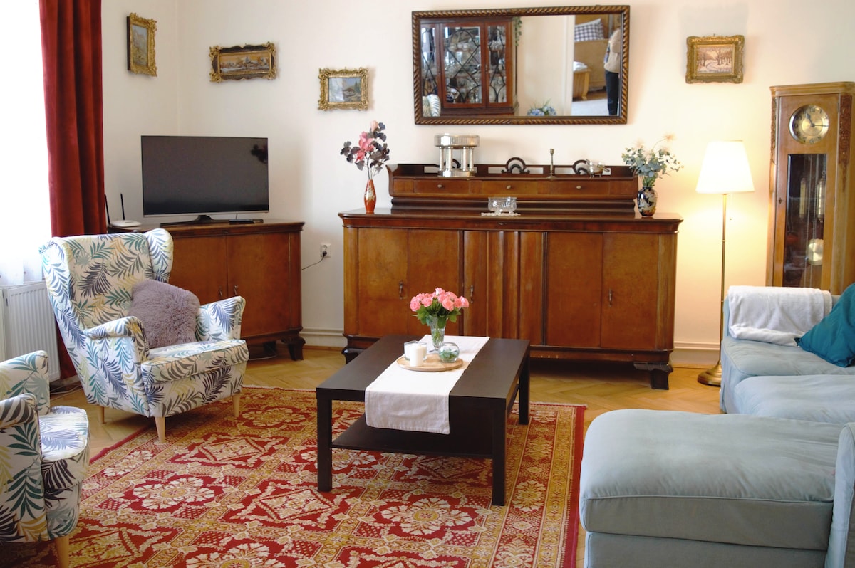 Ευρύχωρο και άνετο διαμέρισμα δύο υπνοδωματίων σε βολική τοποθεσία κοντά στο κέντρο της πόλης. Τα περισσότερα από τα κύρια τουριστικά αξιοθέατα (συμπεριλαμβανομένου του κέντρου της Παλιάς Πόλης) απέχουν μόλις 5 λεπτά με το αυτοκίνητο και η περιοχή είναι γεμάτη εστιατόρια, καφέ και καταστήματα. Το διαμέρισμα είναι εξοπλισμένο με όλες τις παροχές που μπορεί να χρειαστείτε για μια άνετη διαμονή, όπως δωρεάν πάρκινγκ, WiFi και καλωδιακή τηλεόραση, πλήρως εξοπλισμένη κουζίνα, μεγάλο αίθριο και πλυντήριο ρούχων.