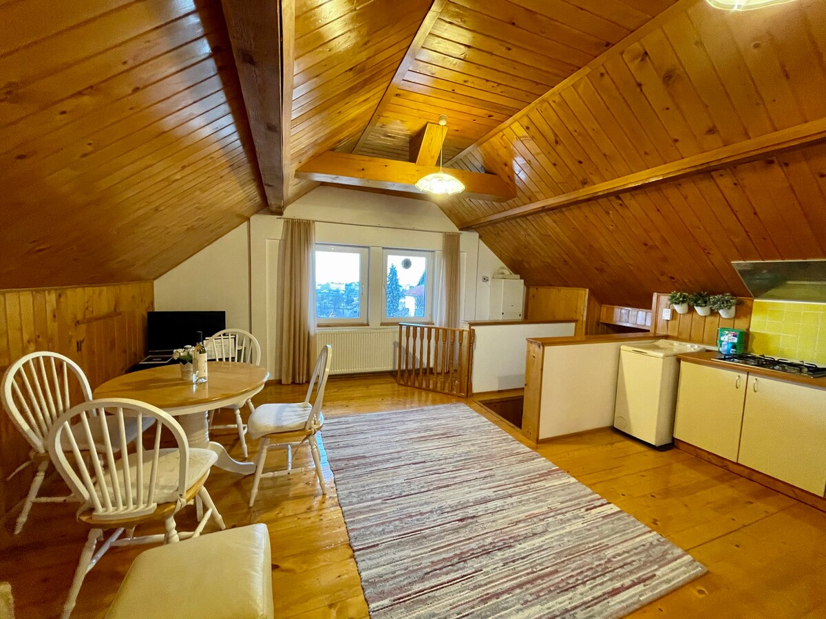 Το διαμέρισμά μας βρίσκεται στα σύνορα της παλιάς πόλης και του δάσους και προσφέρει εύκολη πρόσβαση στη ζωντάνια της παλιάς πόλης, αλλά και στην ηρεμία του δάσους και της άγριας ζωής που περιβάλλει το σπίτι. Ο χώρος βρίσκεται σε ένα ιστορικό αρχοντικό που χτίστηκε από μια οικογένεια Σαξονών στις αρχές του 20ού αιώνα. Διατηρώντας τα αυθεντικά στοιχεία του σπιτιού, όπως το τζάκι και όχι μόνο, το διαμέρισμα είναι επίσης εξοπλισμένο με όλα όσα χρειάζονται για να κάνουν τη διαμονή σας εύκολη και ευχάριστη + μηχανή ποπ κορν και δωρεάν ποπ κορν.