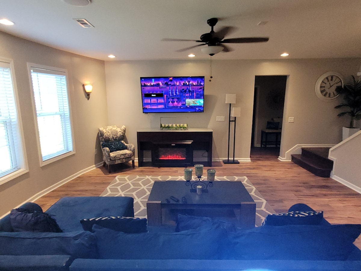 This peaceful property is located less than 5 minutes from 85 highway. It is centrally located and convenient to Peachtree City, Sharpsburg, Newnan, and Senoia, the home of The Walking Dead. The home is situated in a beautiful wooded lake community. This 3 bedroom 2 bath is perfect for families or business travelers. The home has a full basement with a quiet tenant. There is no access to the tenants space or for the tenant to access the upstairs. Quiet hours are from 10 pm-7am