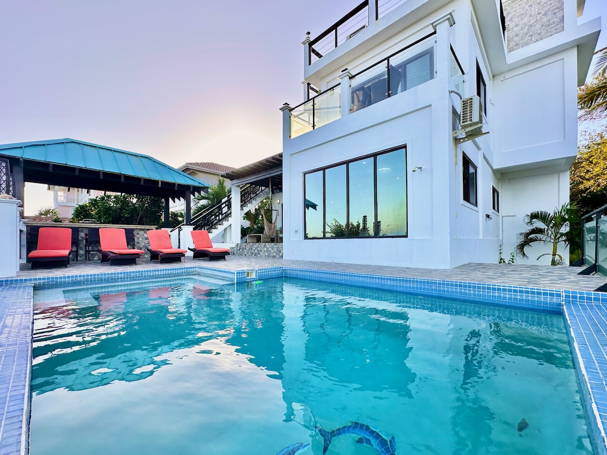 Enjoy your stay in a modern villa located in a quiet and secure area of Roatán. This spacious 3-bedroom villa features a private pool, Smart TV, fully equipped kitchen, and private parking. Vehicle available as an optional add-on for up to 5 guests. Not included in the reservation price. Comfortably sleeps up to 7 guests with 3 queen beds and a sofa bed. Just 7 minutes from the airport and 3 minutes from Mahogany Bay. Optional airport pick-up/drop-off service a (fee may apply).