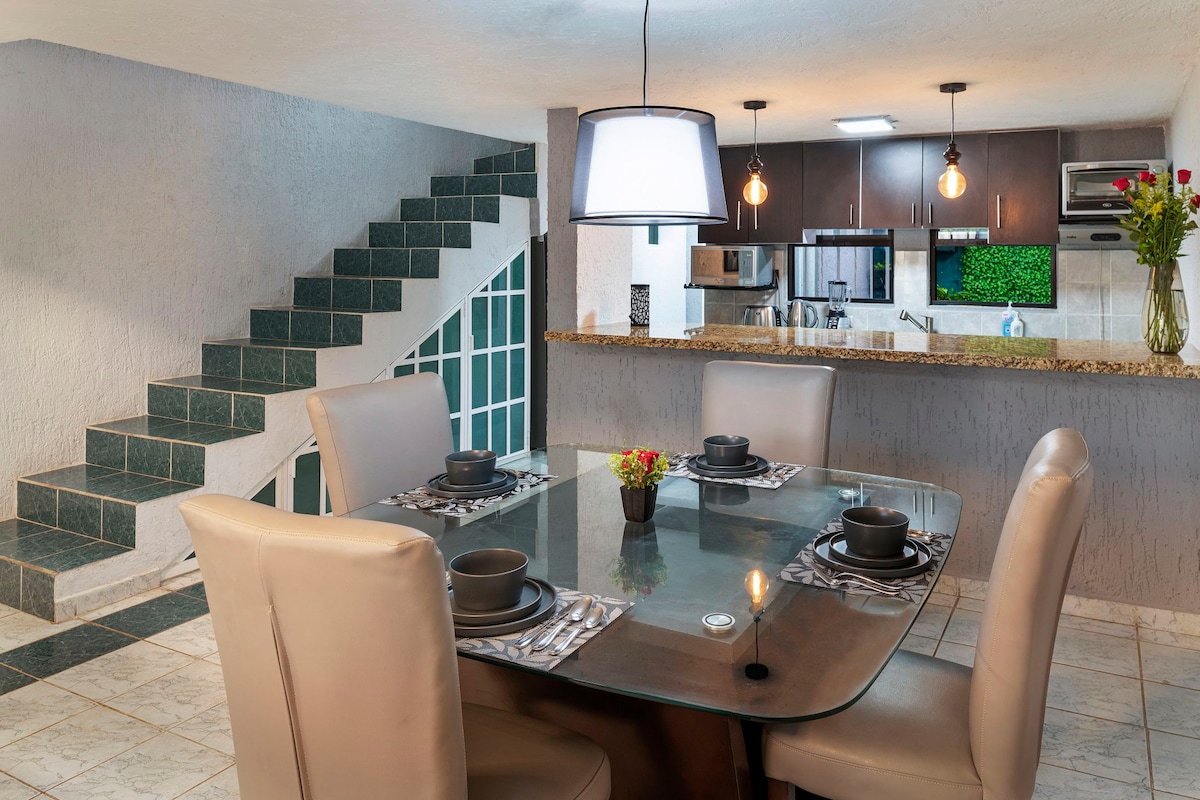 Καλώς ήρθατε στο Residencia Art Project! Αν ψάχνετε για διαμονή λίγα βήματα από την παραλία και τα καλύτερα εστιατόρια και καταστήματα στην 38η και 5η Λεωφόρο, αυτό το διαμέρισμα για έως 5 άτομα είναι ιδανικό για εσάς και την οικογένειά σας ή την παρέα σας. Περιβάλλετε τον εαυτό σας με τέχνη και αρχιτεκτονική, ενώ απολαμβάνετε μια μοναδική και χαλαρωτική εμπειρία σε ένα από τα πιο κεντρικά και αποκλειστικά συγκροτήματα στην Πλάγια Ντελ Κάρμεν. Θα χαρούμε να σας υποδεχτούμε. Κάντε κράτηση σήμερα! Είμαστε σίγουροι ότι θα νιώσετε σαν στο σπίτι σας.
