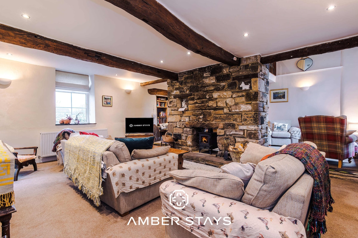 Independence in your own place - Hayloft is hidden away at the end of our 17th century farmhouse and is a special place to stay. Step inside to find the kitchen with heated stone floors and beams overhead. In the living room there's space to eat, full bookshelves and a wood burner for cosy winter evenings. Upstairs is a galleried bedroom with a large 5 foot king bed and a bathroom with deep free-standing bath and large walk-in shower. A retreat from it all in your own Yorkshire bolthole.