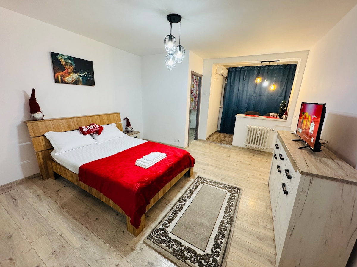 Μοντέρνο και άνετο διαμέρισμα που βρίσκεται στην κεντρική περιοχή της Κραϊόβα σε έναν ήσυχο δρόμο,εξοπλισμένο με νέα που αποτελείται από: ένα ευρύχωρο υπνοδωμάτιο εξοπλισμένο με ένα διπλό κρεβάτι, τηλεόραση, γραφείο,κομοδίνο, ένα σαλόνι με μεγάλη τηλεόραση,επεκτάσιμη γωνία, ένα όμορφα διαμορφωμένο μπαλκόνι,ένα νέο μπάνιο εξοπλισμένο με μπανιέρα, πλήρως εξοπλισμένη κουζίνα: κουζίνα,ψυγείο, πλυντήριο ρούχων, καφετιέρα, κουκούλα, πιάτα, φλιτζάνια, μαχαιροπίρουνα, μαγειρικά σκεύη κ.λπ., ένας διάδρομος με κρεμάστρα και ντύσιμο. Όλα τα έπιπλα και οι παροχές είναι καινούρια.