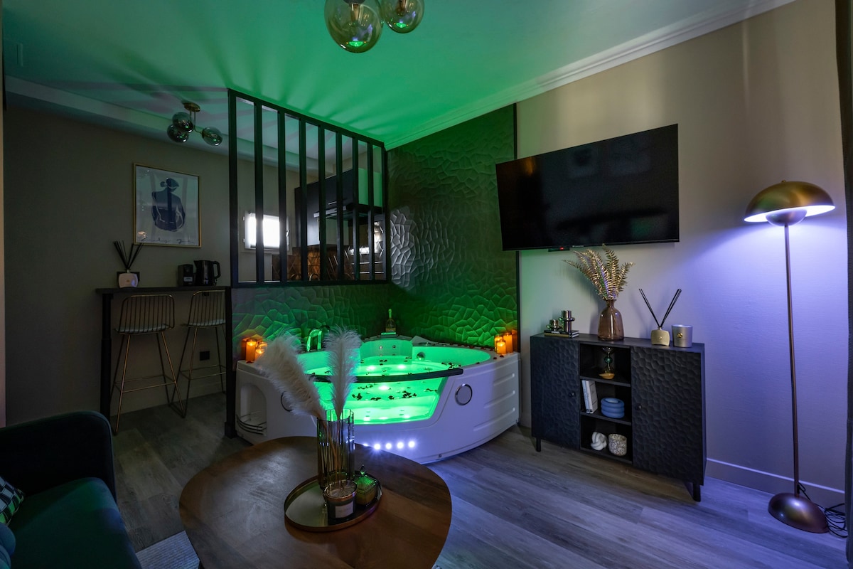 Ονειρεύεστε μια χαλαρωτική και ρομαντική στιγμή ιδιωτικά; Χαρίστε στον εαυτό σας μια στιγμή απόλυτης χαλάρωσης. Το Khalysspa είναι ένα ιδιωτικό διαμέρισμα που περιλαμβάνει διάφορες εγκαταστάσεις για την ευεξία σας. Πλήρως ανακαινισμένο και με όλες τις ανέσεις, αποτελείται από ένα ευρύχωρο σαλόνι με μπανιέρα υδροθεραπείας, μια κουζίνα εξοπλισμένη με τραπεζαρία. Ένα υπνοδωμάτιο με σάουνα υπερύθρων, ένα όμορφο μπάνιο και ξεχωριστή τουαλέτα. Δωρεάν σύνδεση WIFI, καθώς και πλήθος καναλιών.