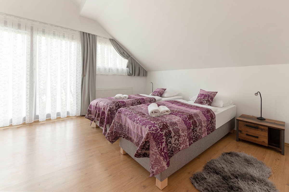 The apartment is very nice, has own entrance, privacy guarantee. The centre is 20 minutes by bus. Shop mall "BTC" is close. Free car parking. Electric Car Charger 22kW. The aptm. has one bedroom with king size bed, 2 bedrooms with bigger bed, one living room with sofa (could be stretched in two beds), fully equipped kitchen, bathroom with washing machine, dryer and big Teresa. FREE WiFi, free parking, CABLE TV, Grocery, bakery and Butchery is very close -cheap meat, bred products & Pizza ..etc