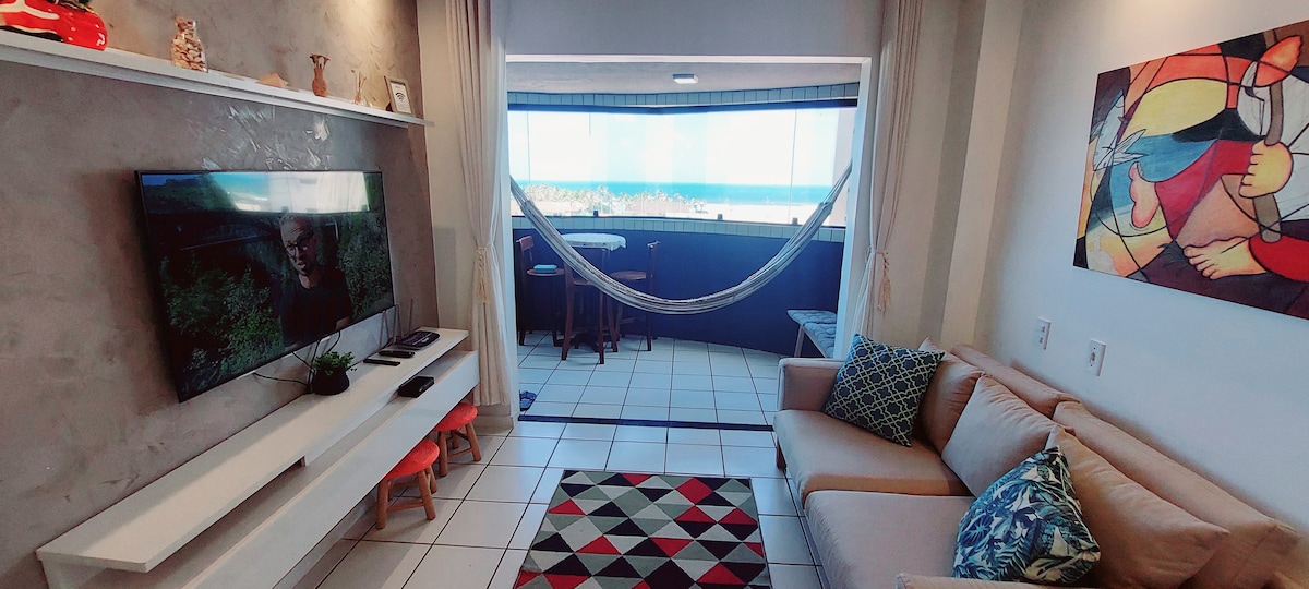 Το διαμέρισμα βρίσκεται μπροστά από την παραλία, σε ένα πολύ όμορφο συγκρότημα, με κήπους, πισίνες και λίμνες. Ο χώρος αναψυχής διαθέτει τζακούζι, πισίνες, γυμναστήριο, αίθουσα παιχνιδιών, παιδική χαρά, σάουνα και παιδική χαρά. Είναι πολύ ωραίο να έρχεστε από την παραλία και να πέφτετε στις πισίνες. Βρίσκεται στον τελευταίο όροφο και προσφέρει μια προνομιακή θέα στην παραλία και τη θάλασσα. Είναι ευχάριστο να χαλαρώνετε στην αιώρα του μπαλκονιού και να παρατηρείτε το τοπίο. Το δωμάτιο διαθέτει γραφείο, το οποίο επιτρέπει την εργασία, καθώς το διαδίκτυο είναι γρήγορο.