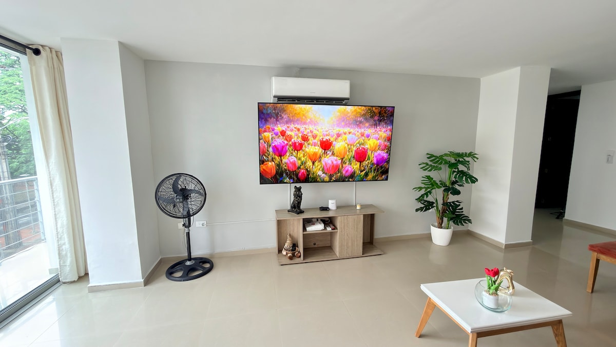 Πλήρως επιπλωμένο διαμέρισμα. Διαθέτει κλιματισμό σε όλο το διαμέρισμα. Βρίσκεται στην καλύτερη τοποθεσία στην Κούκουτα. Κοντά στο Exito, D1, Makro Homecenter, εμπορικό κέντρο Ventura Plaza. Μπορείτε να βρείτε 3 λεπτά αποκλειστικά εστιατόρια, νυχτερινά κέντρα, το Malecon και το κέντρο της πόλης. Βρίσκεται σε ιδιωτικό συγκρότημα διαμερισμάτων που διαθέτει πισίνα, γυμναστήριο, μπάρμπεκιου, βεράντα με πανοραμική θέα, παιδικό πάρκο και ιδιωτικό χώρο στάθμευσης. Εξοπλισμένο με WiFi, τηλεόραση, Netflix. 15 λεπτά από το αεροδρόμιο