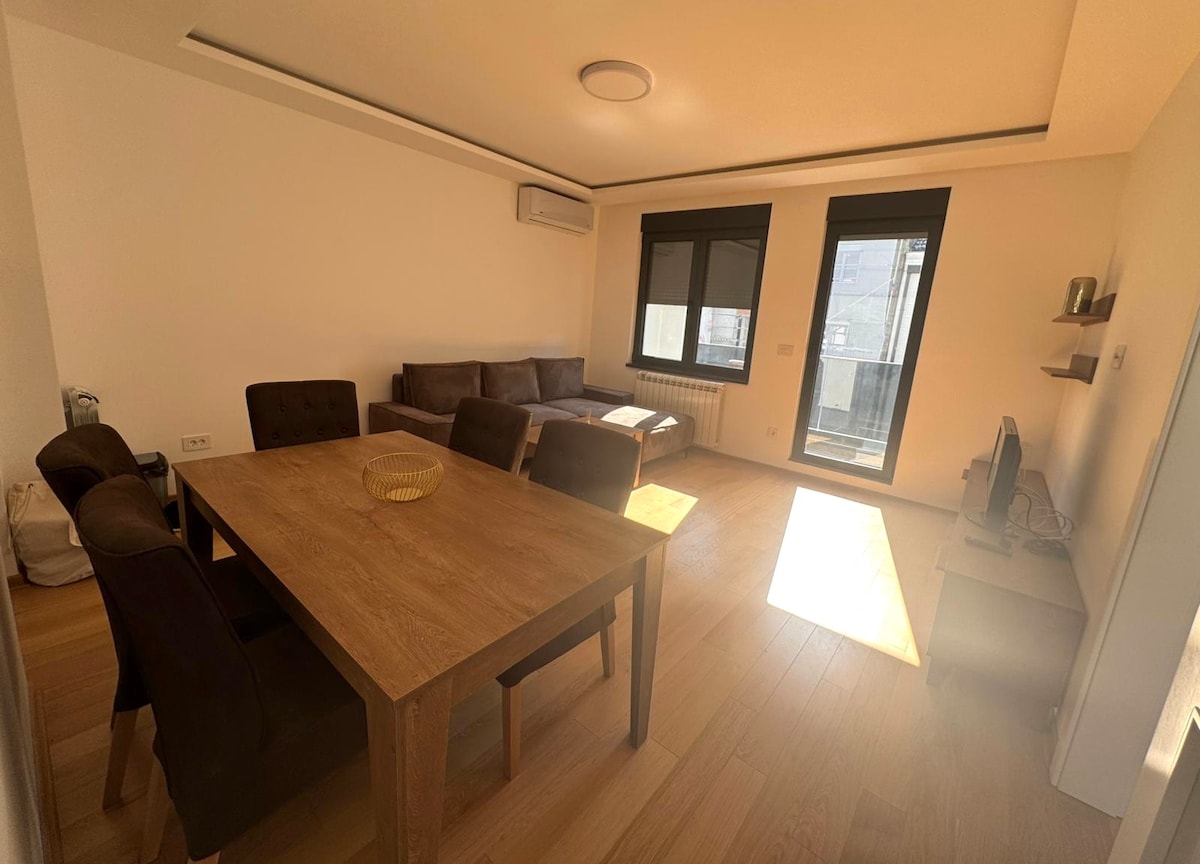 Μοντέρνο, πλήρως ανακαινισμένο διαμέρισμα στο Νέο Βελιγράδι, σε μικρή απόσταση με τα πόδια από το Sava Centar και τη Belgrade Arena. Βρίσκεται στον 1ο όροφο σε μια ήσυχη κατοικημένη περιοχή με εύκολη πρόσβαση στον αυτοκινητόδρομο και το κέντρο της πόλης. Απολαύστε check-in χωρίς παρουσία οικοδεσπότη, άνετο υπέρδιπλο κρεβάτι, πλήρως εξοπλισμένη κουζίνα και μπάνιο, γρήγορο δωρεάν WiFi και τηλεόραση UHD Smart TV. Σχεδιασμένο για άνεση και ευκολία. Η καθυστερημένη αναχώρηση είναι διαθέσιμη με επιπλέον χρέωση, ανάλογα με τη διαθεσιμότητα.
